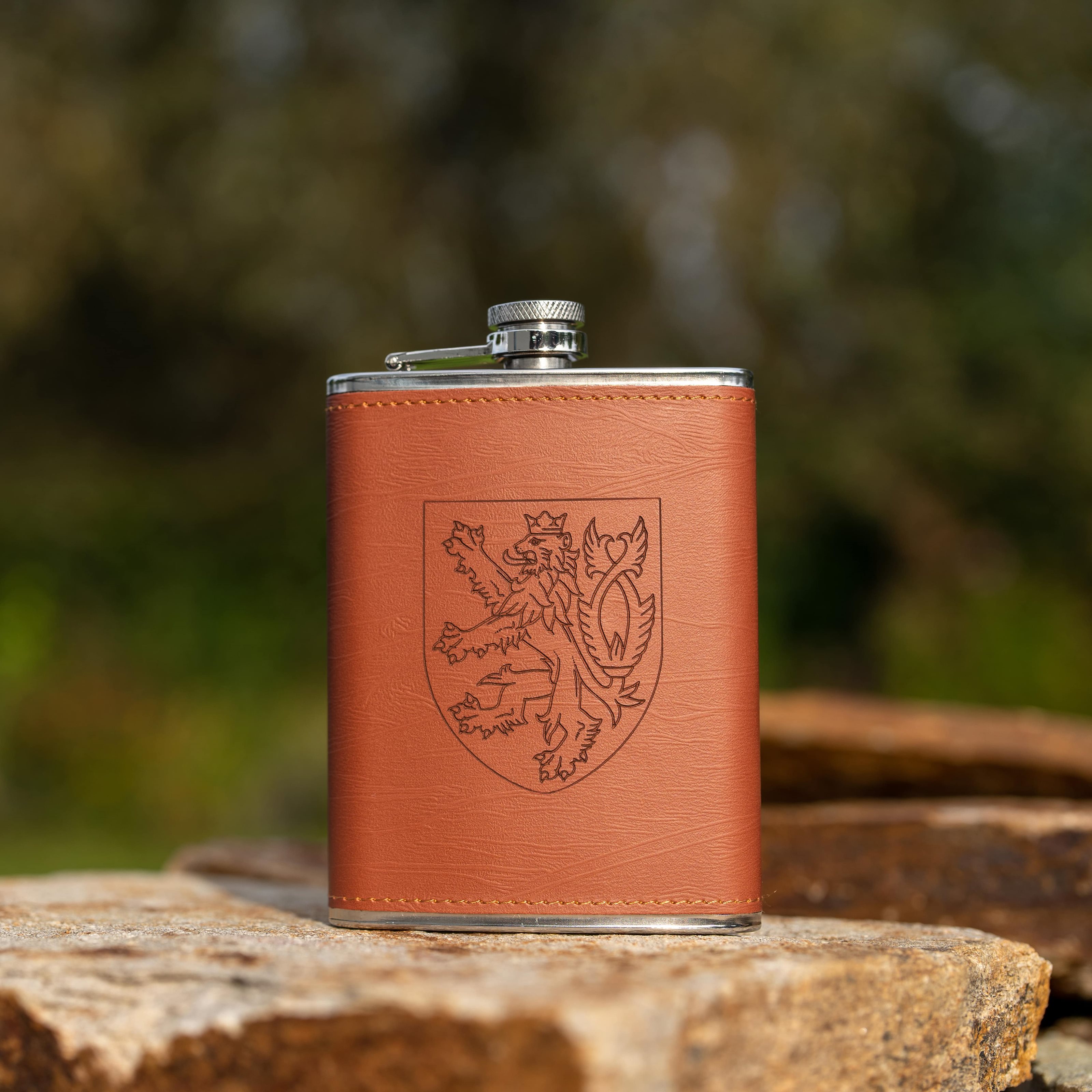 Štýlová ploskačka s vyobrazením českého leva, ktorá je vďaka praktickej krabičke ideálnym darčekom. Ploskačka je vyrobená z nerezovej ocele a koženky. Dodávaná s dvoma panákmi a lievikom.