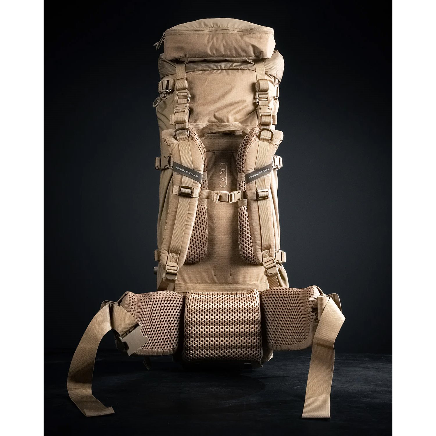 Hliníkový nosný systém je tvarovaný tak, aby poskytoval maximálnu oporu chrbta. V prípade potreby je možné celý batoh odstrániť a chrbtový systém používať samostatne alebo v kombinácii s iným kompatibilným príslušenstvom z produktovej rady EMOD HUNT od EBERLESTOCK. Ramenné popruhy sú vybavené stabilizačnými zarážkami, elastickým hrudným popruhom a dajú sa výškovo nastaviť podľa potrieb používateľa. Bedrový pás má naozaj hrubú silikónovú podložku, ktorá zabraňuje skĺznutiu batohu pri dynamickom pohybe. Bočné strany bedrového pásu sú tiež silne polstrované a zapínajú sa pomocou pevnej plastovej pracky.