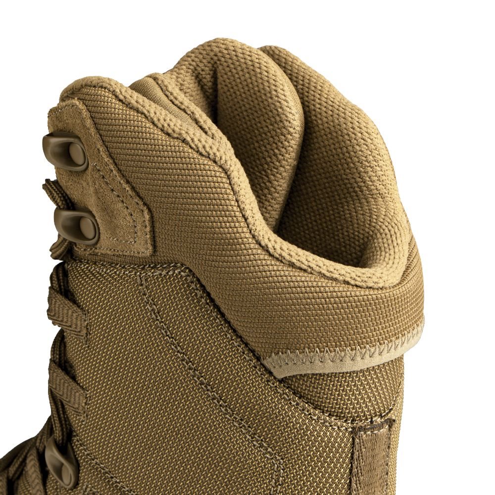 Systém šnurovania je kompatibilný s detektormi kovov, spĺňa požiadavky TSA a umožňuje rýchle obúvanie a vyzúvanie topánok. Jazyk topánky je spojený s topánkou tak, aby sa zabránilo nežiaducemu vniknutiu nečistôt, a disponuje integrovaným priestorom na uloženie šnúrok. Zásadnou výhodou topánky je systém TacFit Technology® pre variabilné nastavenie vnútornej šírky pomocou dodávanej vložky. Stielka PerfX® je vyrobená z 30 % recyklovaných materiálov a ponúka vysokú mieru komfortu.