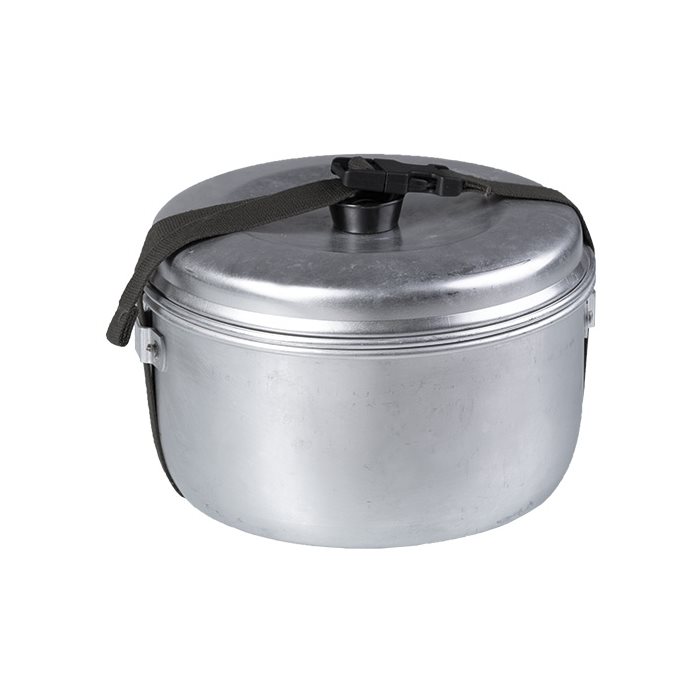 Obsah balenia: 1,0 litrový hrniec bez rukoväte a pokrievky, 2,5 litrová kanvica bez rukoväte, tanier s priemerom 20 cm, kuchynské kliešte, baliaci popruh s kovovou prackou.
