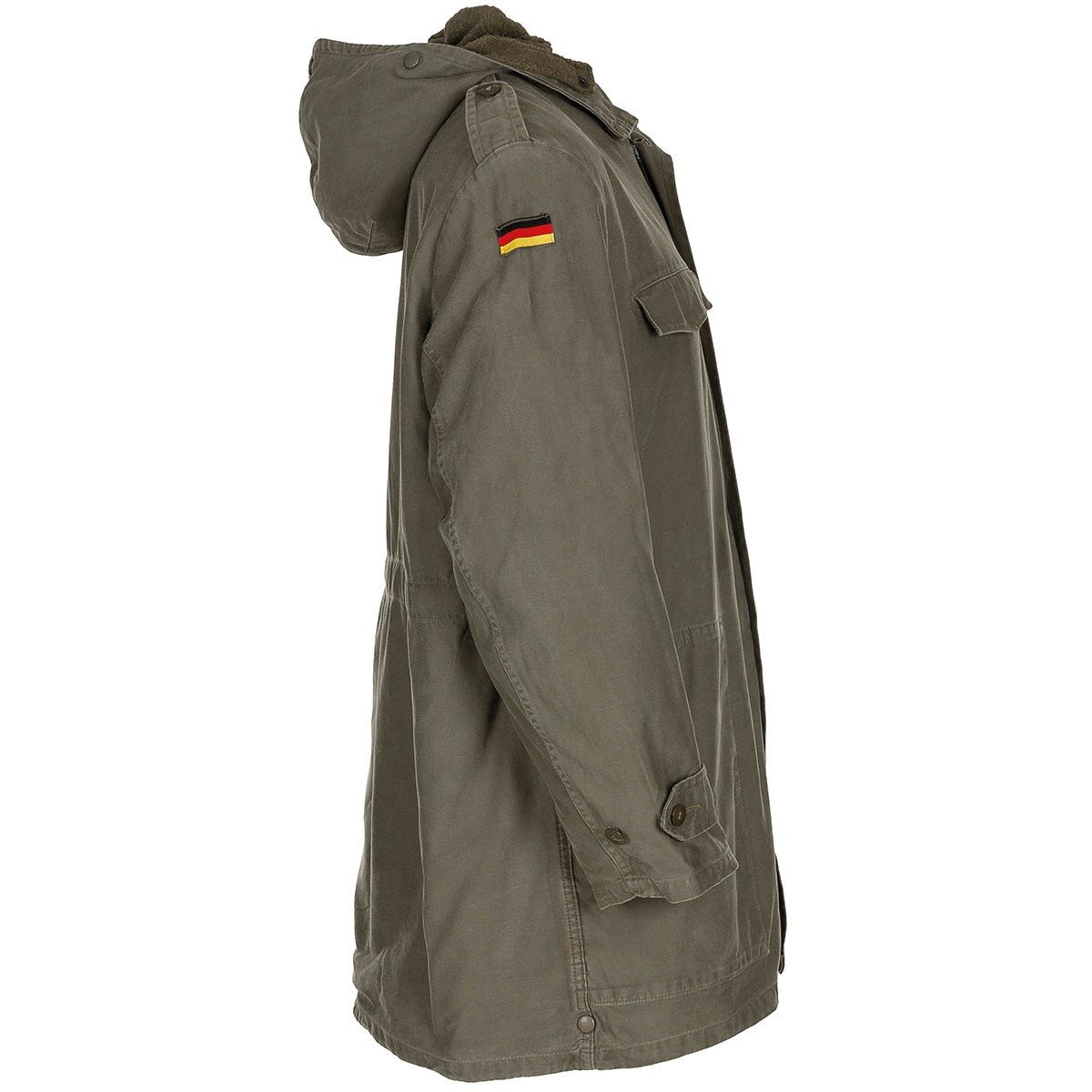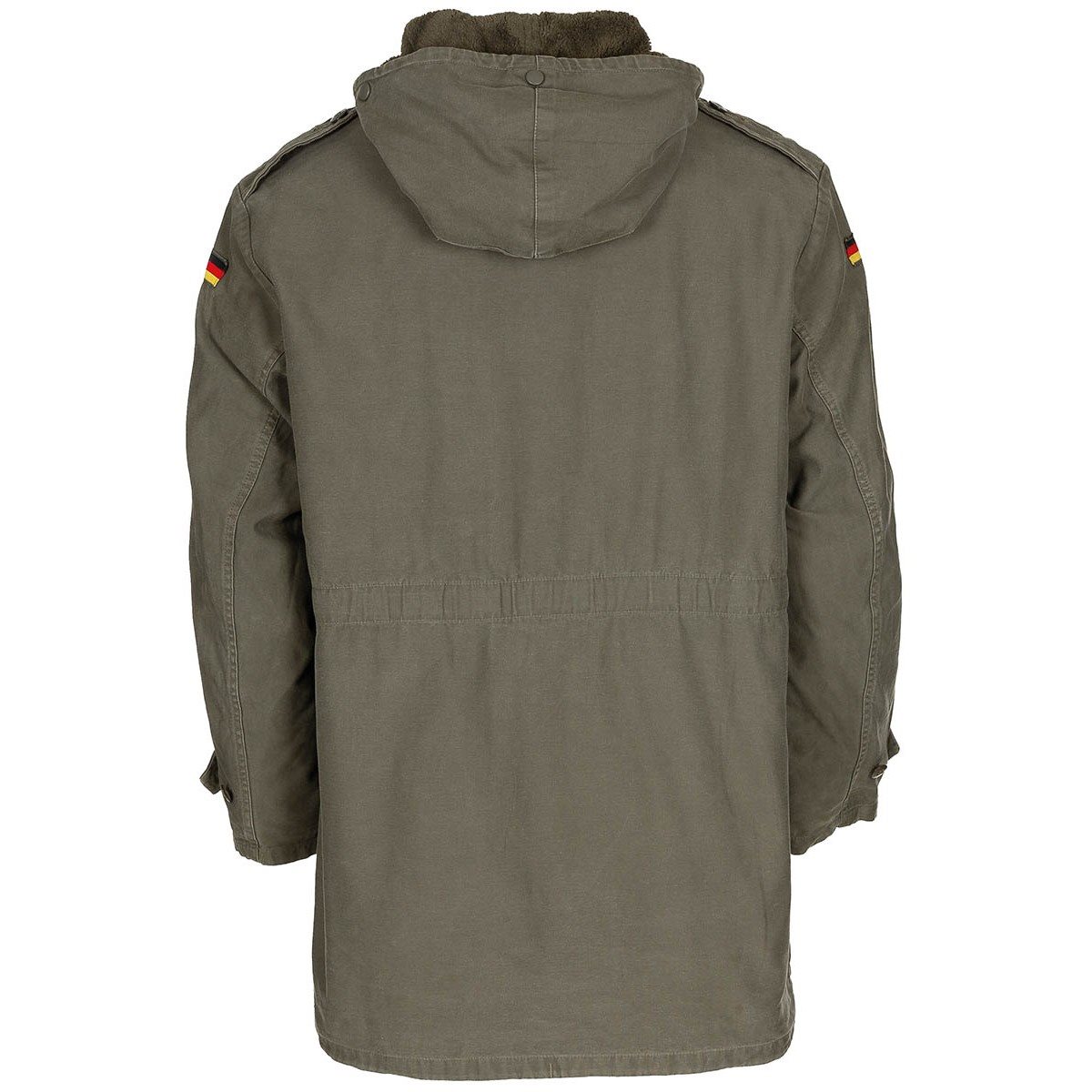 Kvalitná zelená parka nemeckého bundeswehru. Vyberateľná zimná vložka. Zapínanie na zips kryté légou s gombíkmi. Štyri vrecká s pätkami so zapínaním na gombík. Sťahovacia šnúrka v kapucni a dolnom leme bundy. Nastaviteľná šírka pása. Ďalšie informácie