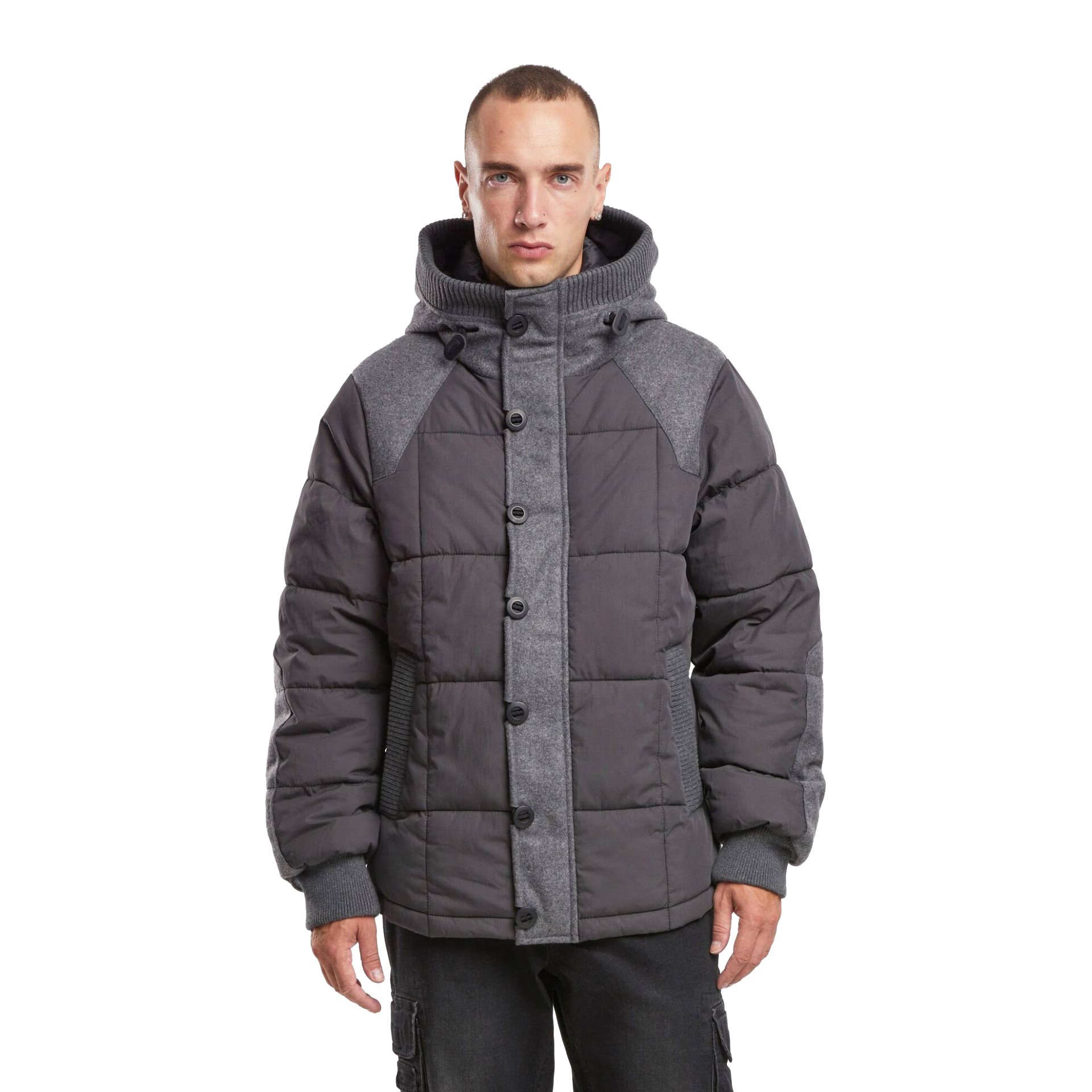 Prešívaná bunda GARRET od nemeckej značky BRANDIT. Hlavná časť hornej časti bundy je vyrobená zo zmesi 78 % bavlny a 22 % nylonu, doplnená kontrastnými panelmi zo zmesi 55 % polyesteru a 45 % vlny. Tepelný komfort zabezpečuje 100 % polyesterová výplň, zatiaľ čo 100 % bavlnená podšívka zaručuje maximálny komfort pri nosení.