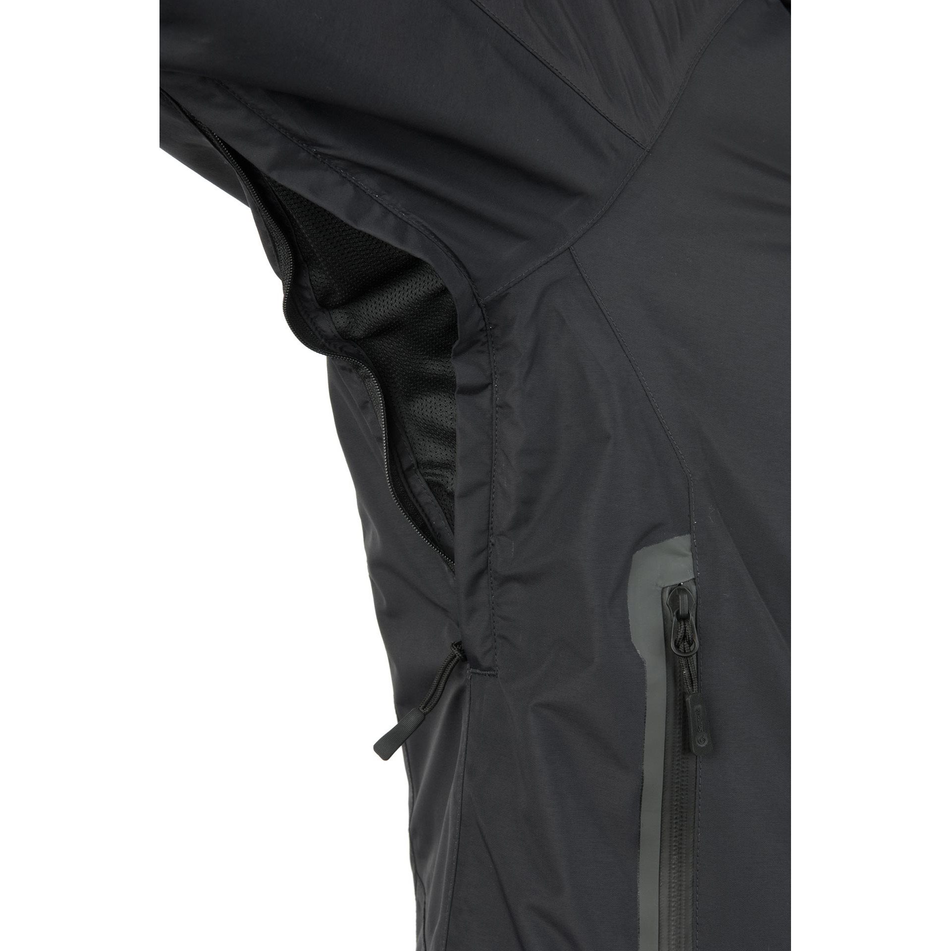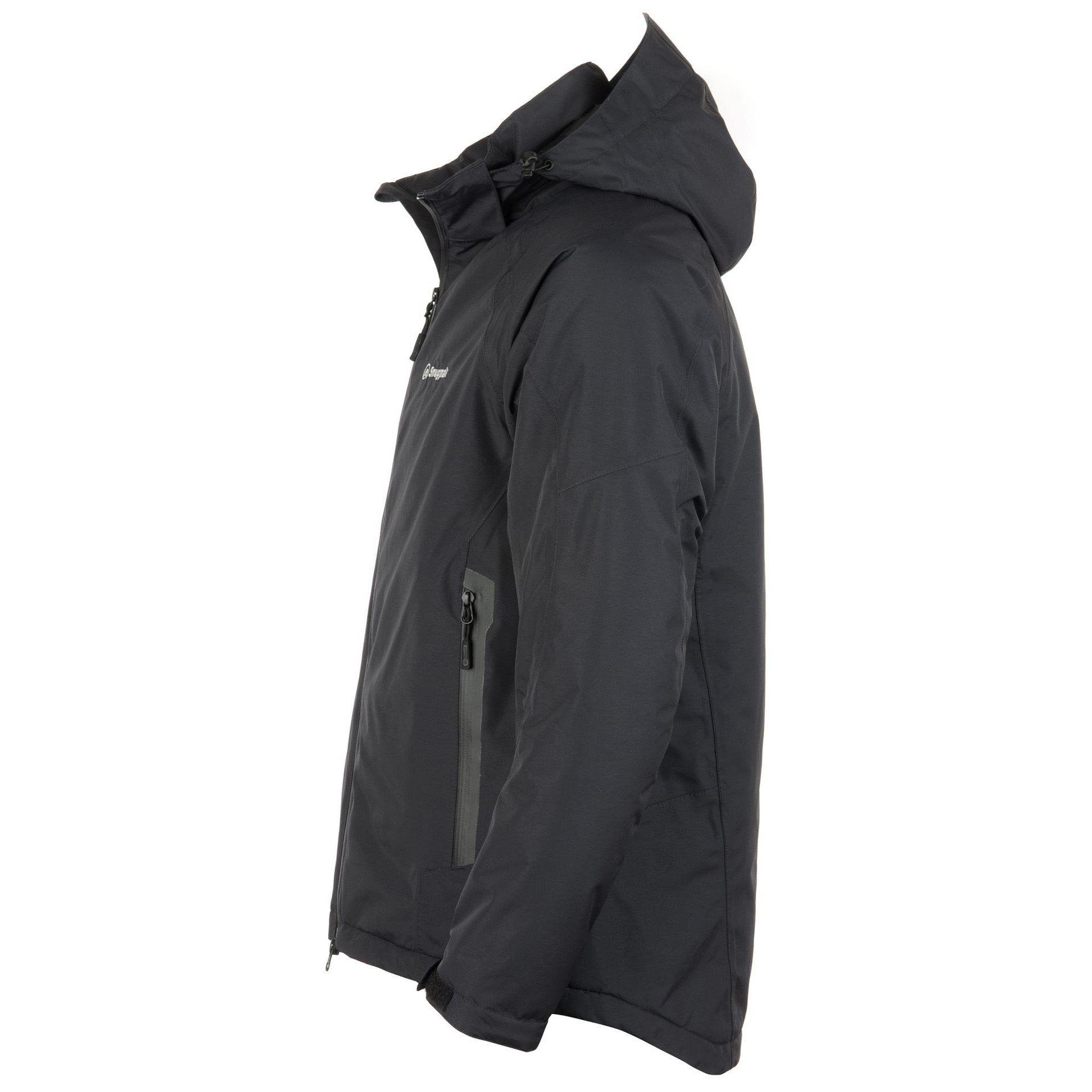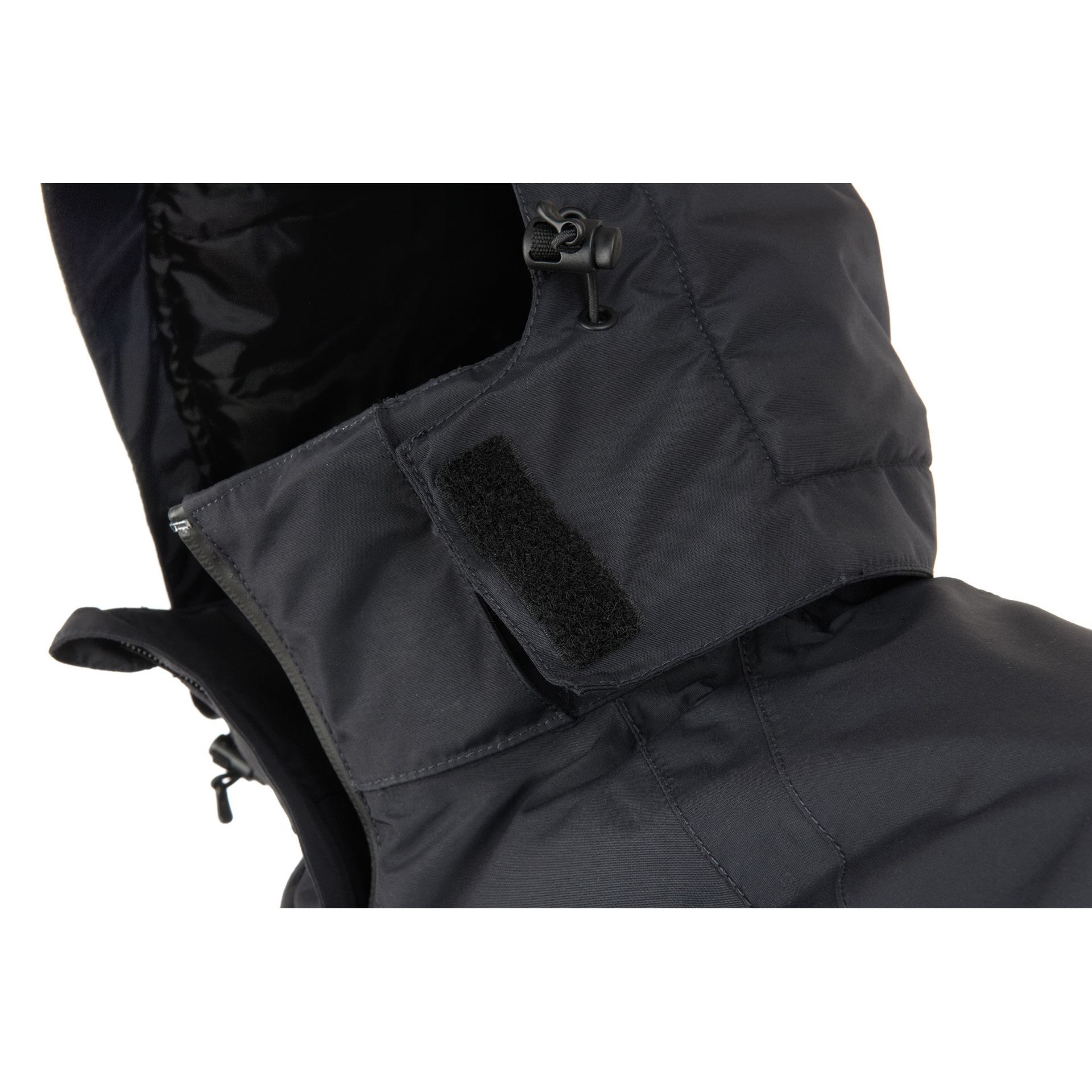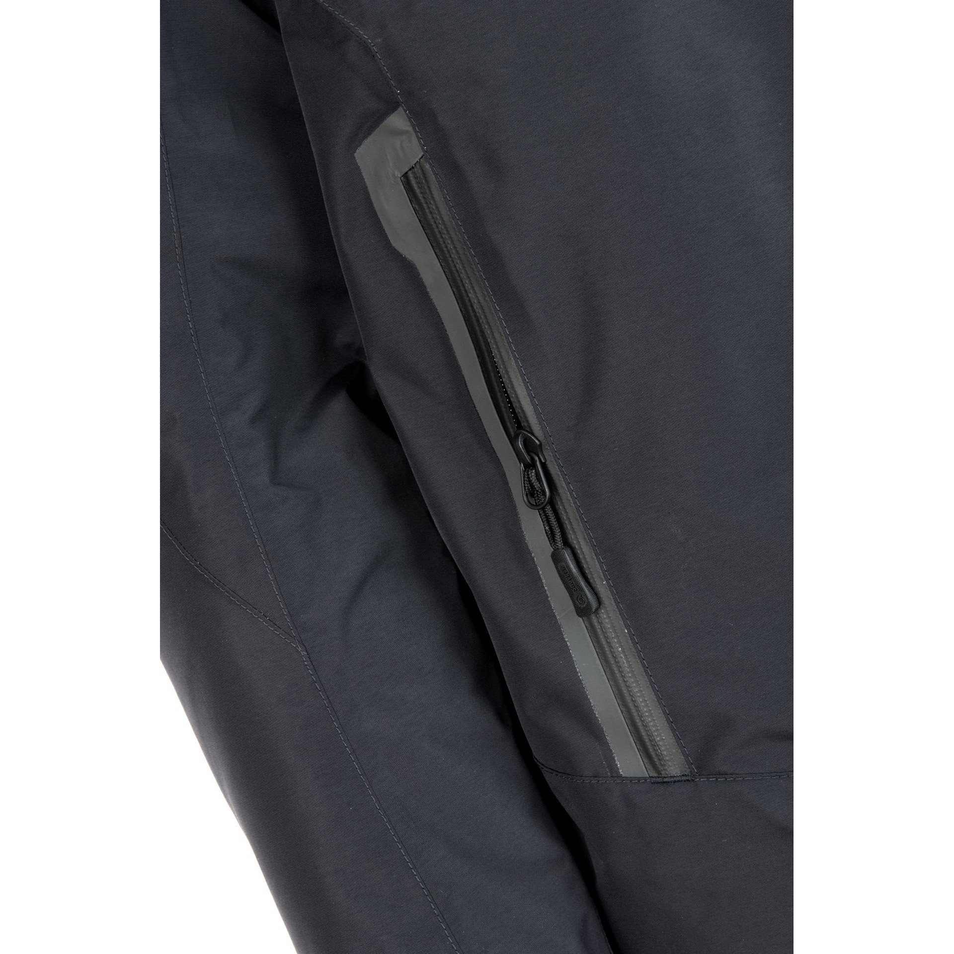 Zapínanie bundy je riešené nepremokavým a vetruodolným obojsmerným zipsom YKK®, ktorý je v stojatkovom golieri zakončený chráničom krku a fúzov. Golier je vybavený odnímateľnou a zateplenou kapucňou s možnosťou nastavenia veľkosti. V páse nájdete dve hlboké vrecká na ruky so zateplenou podšívkou. Vrecká sú dostatočne priestranné na ruky v rukaviciach alebo na uloženie drobných vecí a cenností. Jedno menšie vrecko nájdete aj na vnútornej strane bundy. Spodný lem bundy je možné stiahnuť pomocou elastického šnúra, manžety rukávov je možné nastaviť pomocou suchého zipsu.