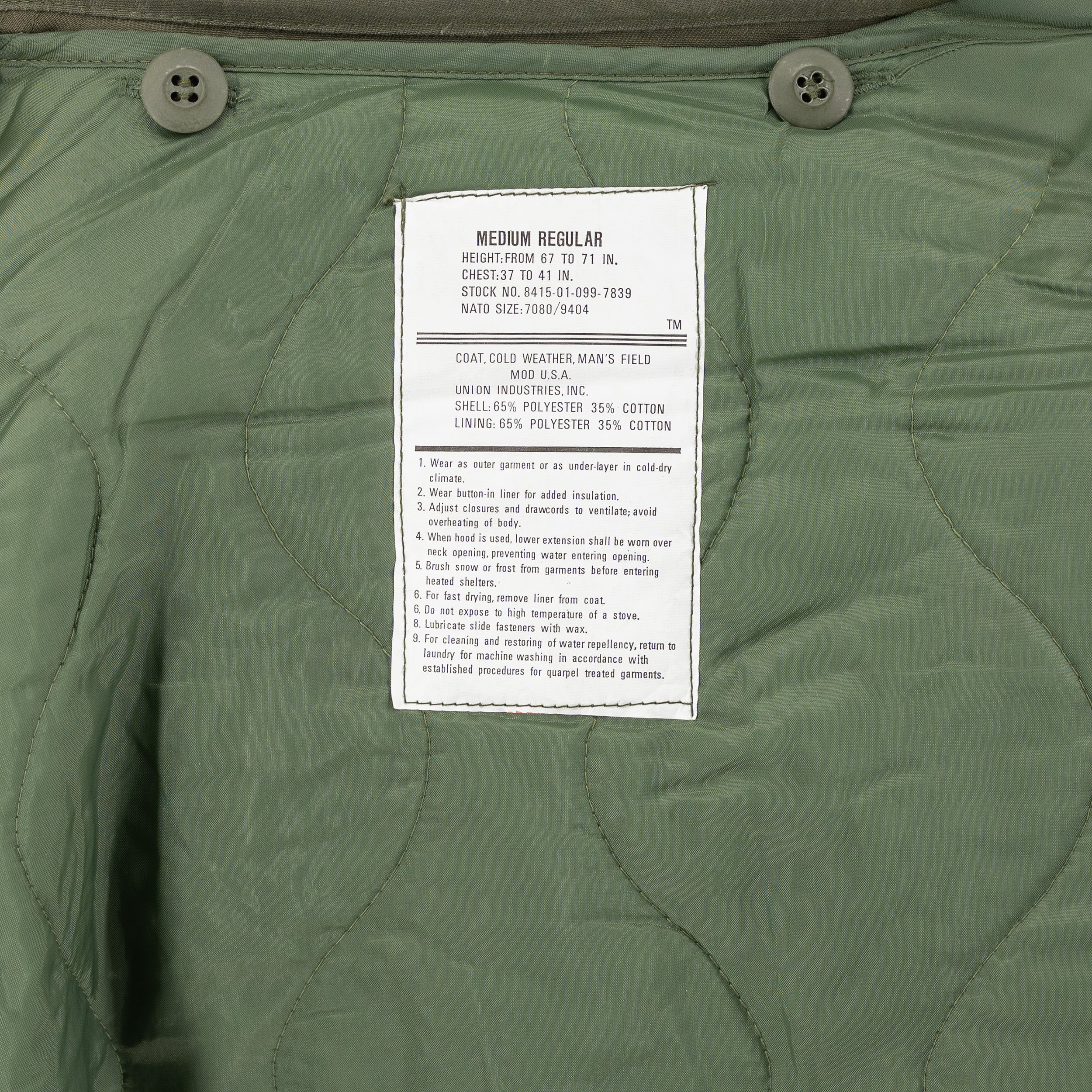 Klasická legendárna bunda v strihu M65, vrátane odnímateľnej prešívanej podšívky. Kovové zipsy. Materiál: 65 % polyester / 35 % bavlna.