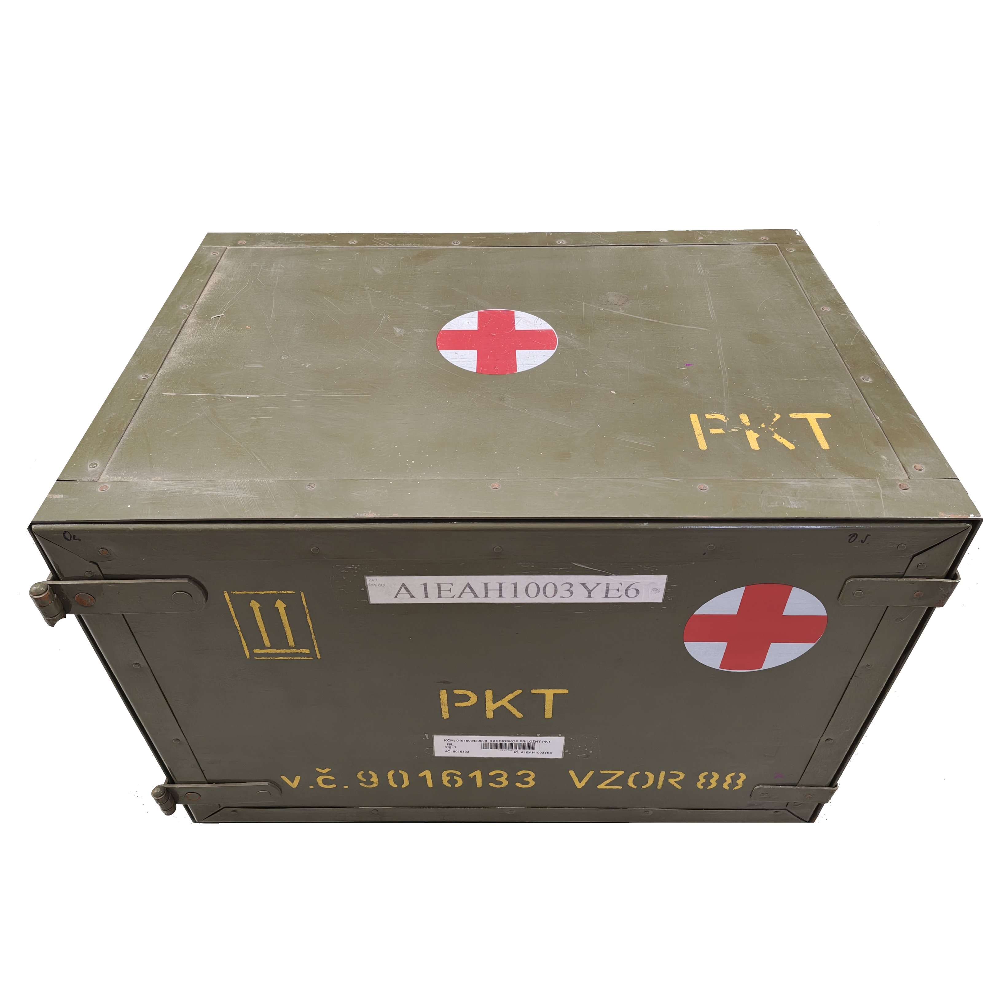 Drevená vojenská debna s tromi zásuvkami a stolíkom. Rozmery cca 57,5 x 39,5 x 39,5 cm. Hmotnosť 25 kg. Ďalšie informácie