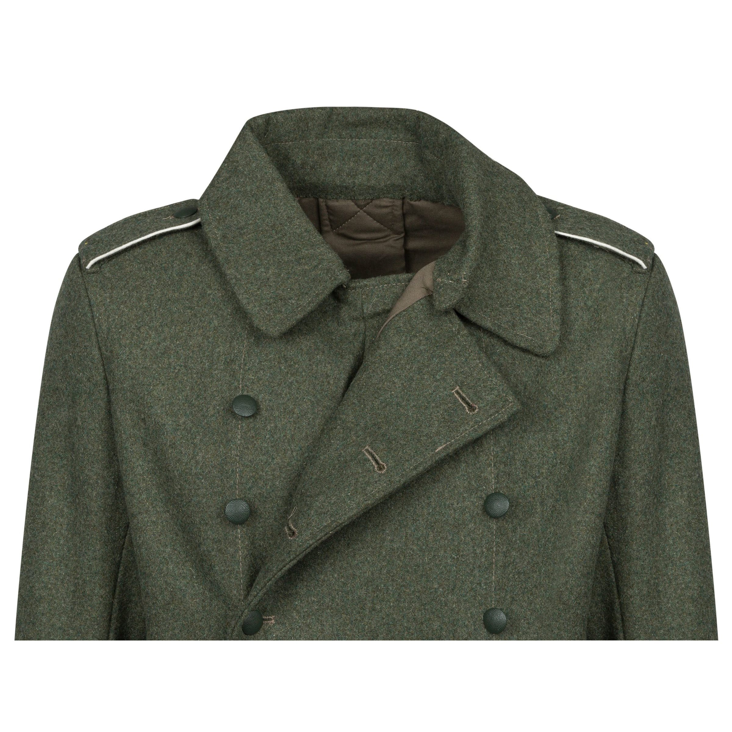 • reprodukcia nemeckého kabáta M40 • na vojnových poliach vystriedal tento kabát starší model M36, na rozdiel od neho má golier z rovnakej látky ako telo kabátu, inak sú však oba modely úplne identické • dva gombíkové rady •