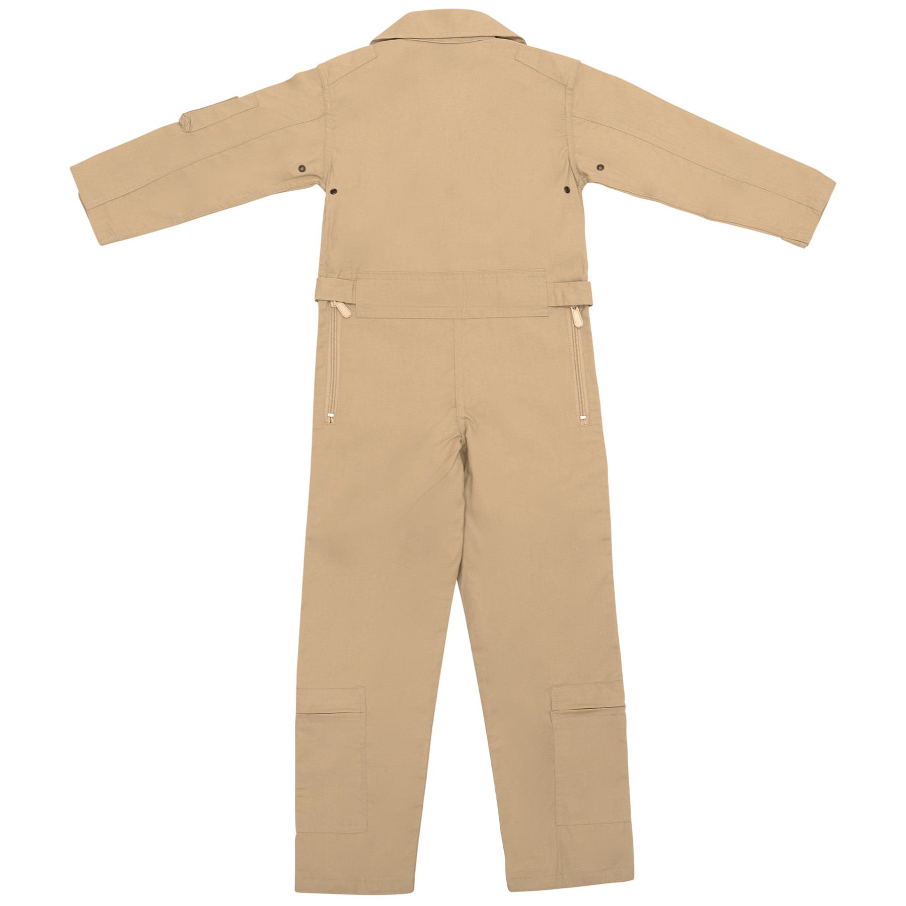 Detská letecká kombinéza v štýle pilotných kombinéz US Air Force. Zapínanie na dvojcestný zips, zipsy na nohaviciach, veľa vreciek so zapínaním na zips, pásky na úpravu pása a koncov rukávov.