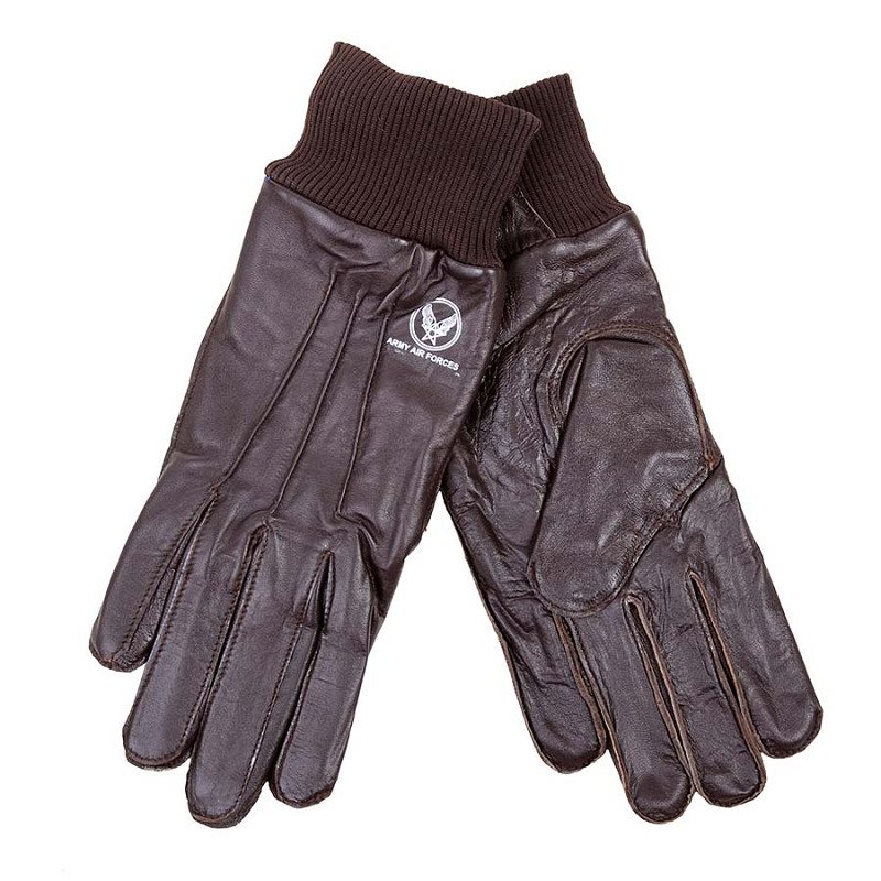 Kožené rukavice pre pilotov letectva s pletenými manžetami BROWN
