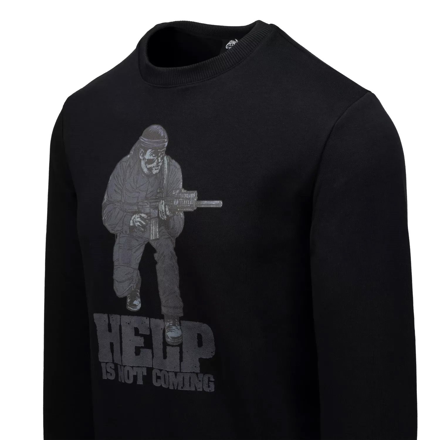 Ľahšia mikina vyrobená z materiálu príjemného na dotyk s potlačou HELP IS NOT COMING (pomoc nepríde). Ďalšie informácie