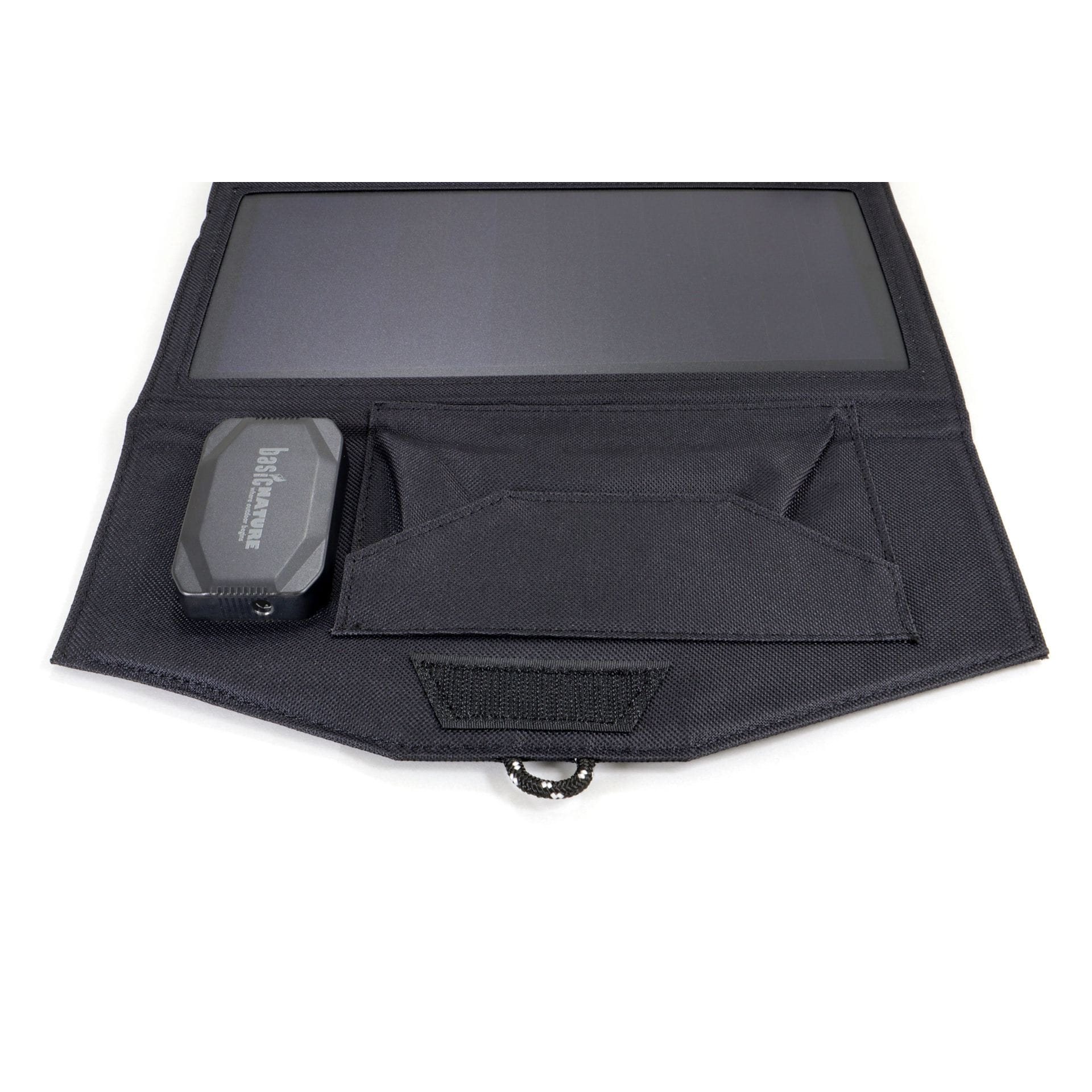 Kompaktný dizajn zaisťuje veľmi ľahkú manipuláciu a prepravu – stačí ho rozložiť a nasmerovať čo najkolmejšie na slnko. Panel je vybavený upevňovacími karabínami a pútkami na pripevnenie napr. k batohu, stanu alebo iným pevným bodom. Plochá konštrukcia z odolnej tkaniny Oxford Nylon je mimoriadne robustná, prachotesná a vodoodpudivá. Sada adaptérov umožňuje nabíjať rôzne typy zariadení s napätím 12 V a 18 V. Vnútorné vrecko slúži na uloženie plochých alebo drobných predmetov. Je možné ho prepojiť s ďalšími solárnymi panelmi, čím je možné zvýšiť celkovú účinnosť.