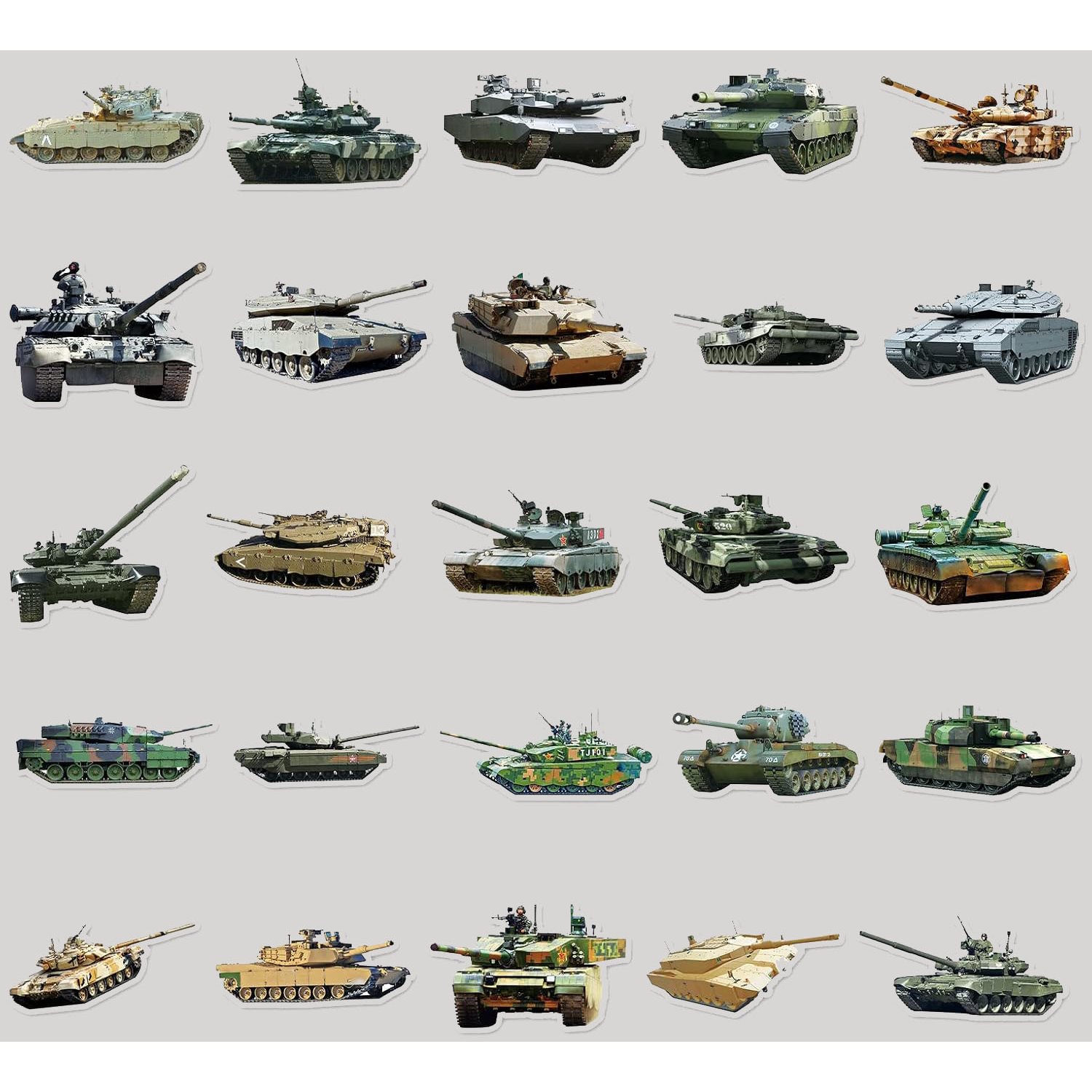 Set 50 farebných samolepiek najrôznejších typov tankov.