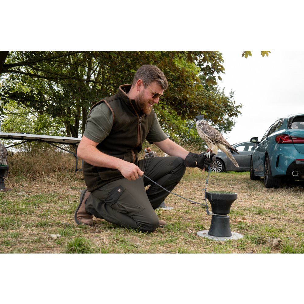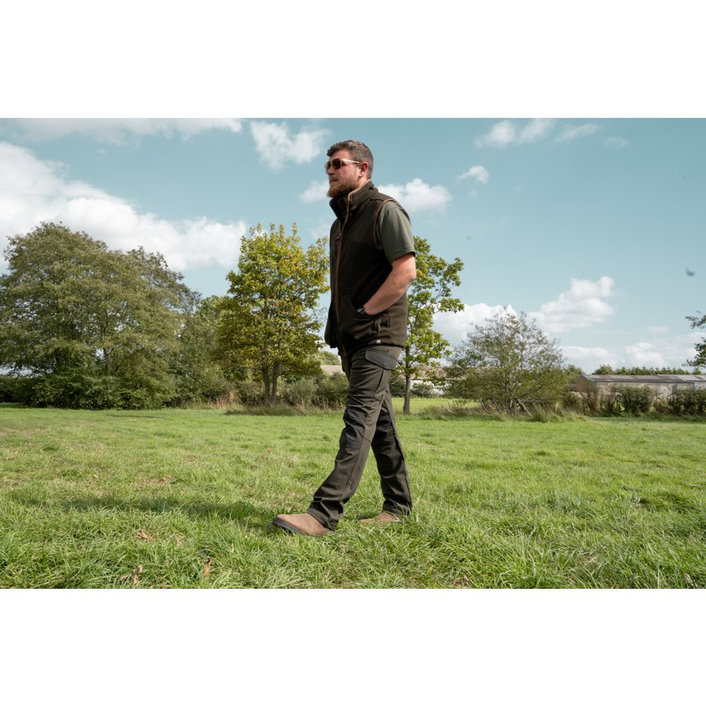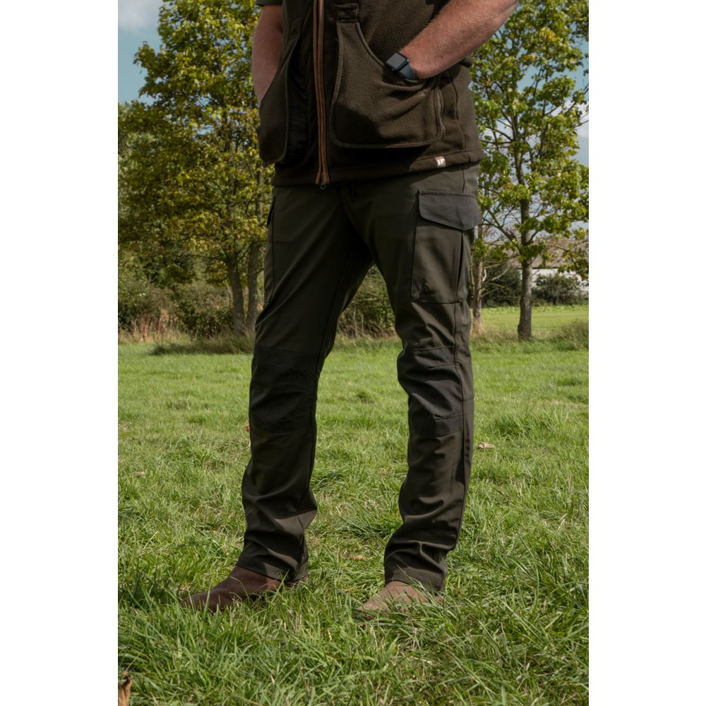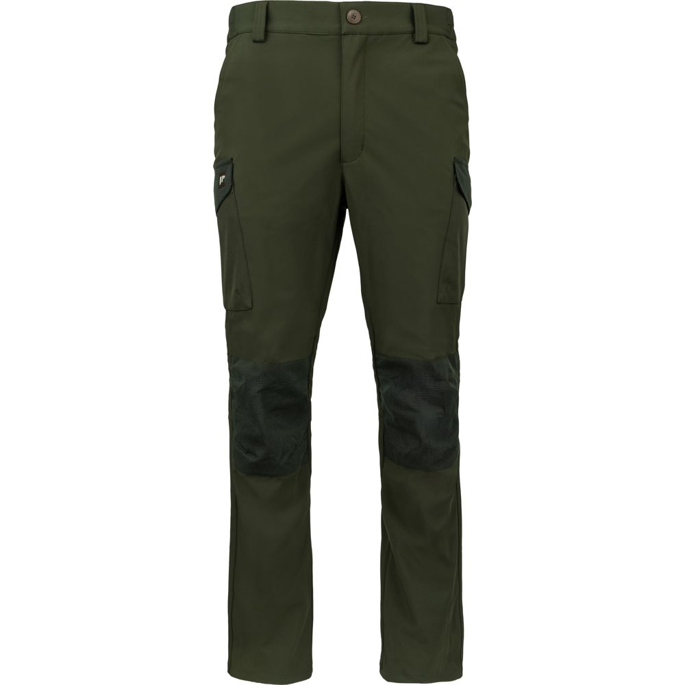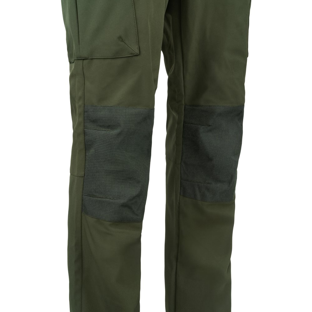 Priedušné softshellové nohavice. Sú vyrobené zo zmiešaného materiálu, ktorý je pružný a ponúka ochranu pred vetrom a ľahkým dažďom. Nohavice disponujú celkom šiestimi vreckami a kontrastnými kolenami v zelenej farbe.