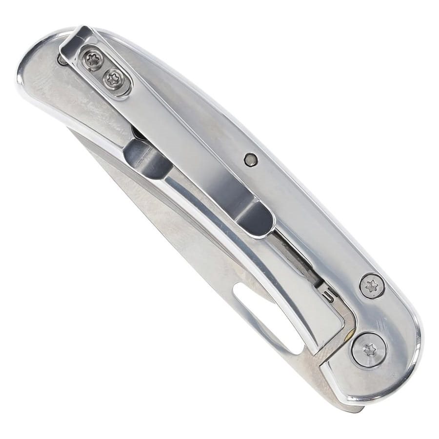 Odľahčený zatvárač s minimalistickou konštrukciou. Čepeľ tvaru Drop point s hladkým ostrím je vyrobená z nerezovej ocele so zrkadlovo lešteným povrchom. Otvorený nôž je istený pomocou poistky typu Framelock. Rukoväť je z časti tvorená nerezovou oceľou a materiálom Delrin®. Pre jednoduché otvorenie jednou rukou môžete využiť otvor v čepeli. Samozrejmosťou je kovový vreckový klip pre ľahké otváranie.