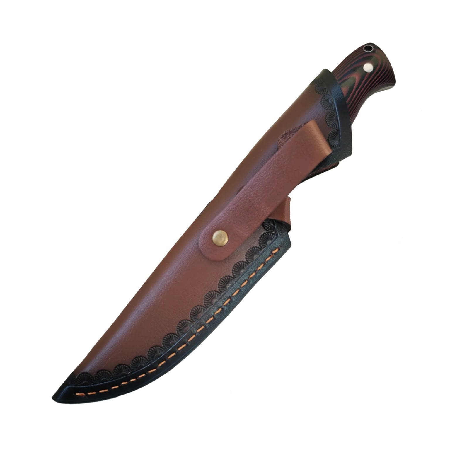 Lovecký full-tang nôž príjemného vzhľadu dodávaný so zdobeným koženým puzdrom, v ktorom je nôž istený pomocou cvoku. Do vysokého lesku leštená čepeľ s hladkým ostrím je vyrobená z nerezovej ocele 3Cr13Mov, na jej konci sa nachádza záštita brániaca nechcenému poraneniu pri skĺznutí ruky. Rukoväť je anatomicky tvarovaná, črienky sú z materiálu Micarta a jej koniec je opatrený otvorom na prevlečenie poistnej šnúry.