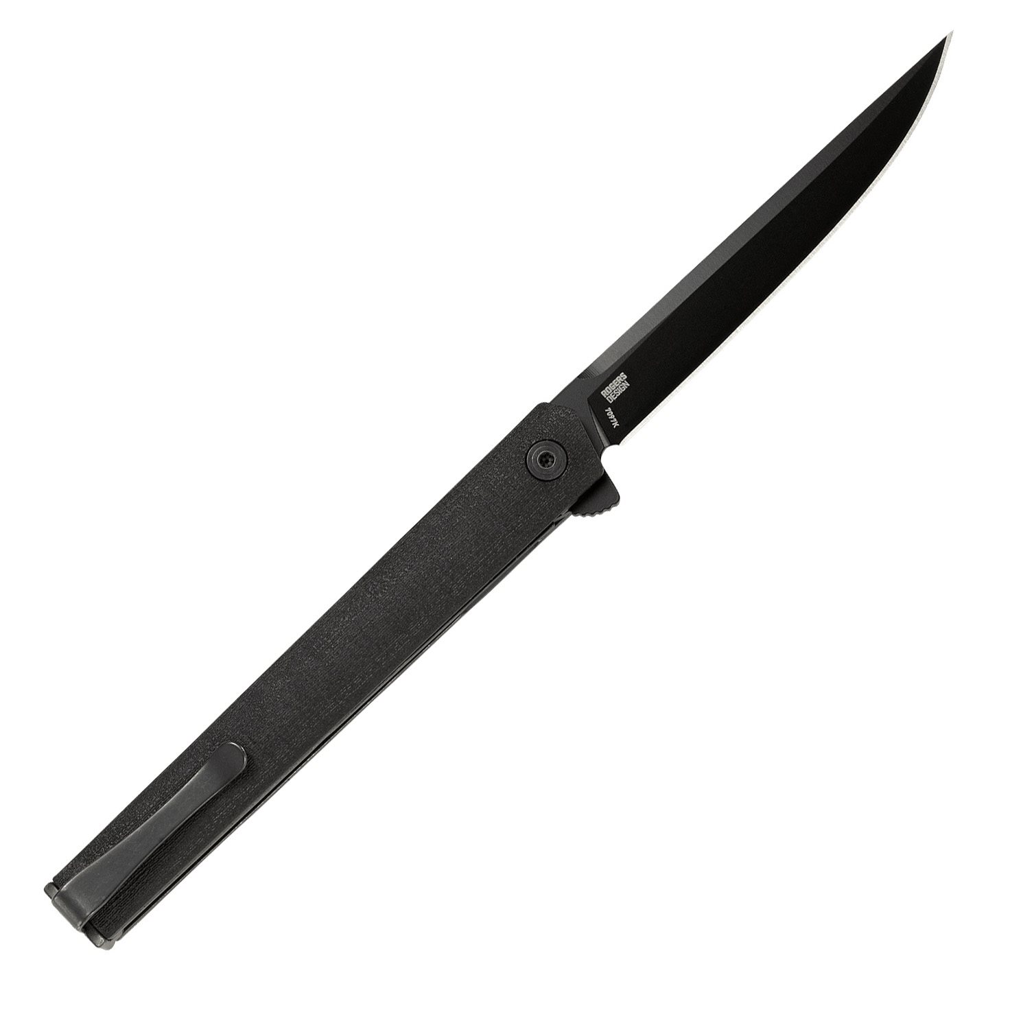 Praktický EDC nôž, ktorý je vďaka svojmu nízkemu profilu a minimálnej hmotnosti nenápadný a je ho možné bez problémov uložiť aj do hrudného vrecka na košeli. Čepeľ s hladkým ostrím je vyrobená z prémiovej nerezovej ocele AUS 8 s vysokým podielom uhlíka a EDP černením, ktoré nožu dodáva špecifický "blackout" vzhľad a umožňuje ľahké ostrenie. O ľahké a predovšetkým hladké otváranie čepele sa stará IKBS™ guličkové ložisko doplnené o jednoduchý flipper. Čepeľ je v otvorenom stave istená pomocou preverenej poistky LinerLock. Rukoväť čiernej farby je vyrobená z nylonu zosilneného pomocou skleného vlákna. Tento materiál sa vyznačuje veľmi nízkou hmotnosťou a neobyčajnou odolnosťou. Vďaka kovovému pútku je možné nôž ľahko zavesiť na opasok, okraj vrecka a pod.