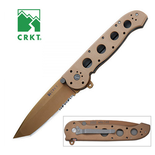 Veľký odolný celokovový zatvárací nôž od americkej firmy CRKT, obľúbený pre svoje vlastnosti aj medzi príslušníkmi ozbrojených síl. Je to univerzálny pracovný nástroj, na ktorý sa môžete kedykoľvek spoľahnúť. Čepeľ má tvar tant je vyrobená z kvalitnej ocele AUS 8 v tvrdosti 58-59 HRC s povrchovou vrstvou nitridu titánu, ktorá výrazne zvyšuje jeho koróznu odolnosť. Ostrie je čiastočne zúbkované. Čepeľ je opatrená obojstranným kolíčkom a flipperom pre rýchle a pohodlné otváranie jednou rukou, flipper po otvorení slúži ako záštita. Nôž je opatrený spoľahlivou poistkou linerlock s automatickým uzamknutím pomocou systému AutoLAWKS, ktorý vďaka odpruženej západke podoprie plátok linerlocku, a tým znemožní náhodné odistenie čepele, a to aj pri hrubom zaobchádzaní. Rukoväť je vyrobená z kvalitného hliníka a rovnako ako čepeľ má pieskovú farbu. Klips na zavesenie noža na vrecko, lem nohavíc či opasok je premiestniteľný na štyri rôzne miesta rukoväti podľa toho, ako vám to najlepšie vyhovuje.