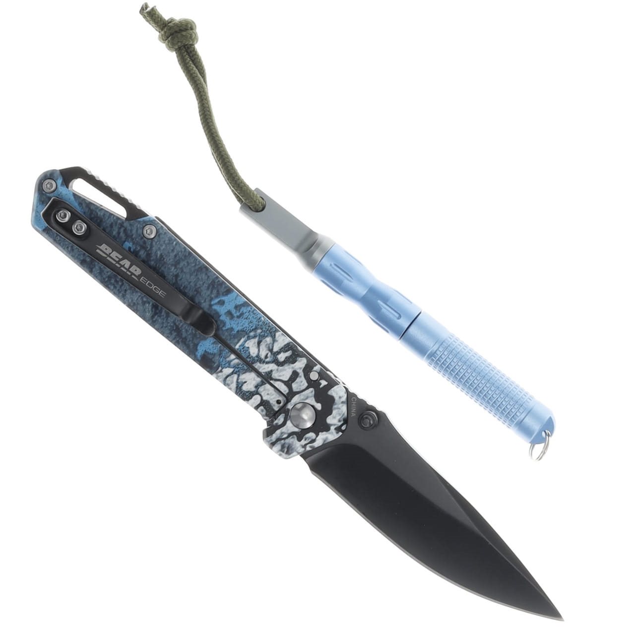Praktický set zatváracieho noža a kľúčenkového nástroja s rezákom a kresadlom. Čepeľ noža s tvarom Drop point je vyrobená z nerezovej ocele 440, pričom jej povrch je pokrytý čiernou vrstvou potlačujúcou tvorbu nechcených odleskov. V otvorenom stave je nôž istený pomocou poistky typu Framelock, ktorej mechanizmus je tvorený konštrukciou rukoväte. Na ľahké otváranie môžete využiť obojstranný kolíček v hornej časti čepele. Črienky rukoväte sú vyrobené z nerezovej ocele. Rukoväť samotná je opatrená praktickým kovovým klipom pre ľahké prenášanie vo vrecku a otvorom na prevlečenie poistnej šnúry.