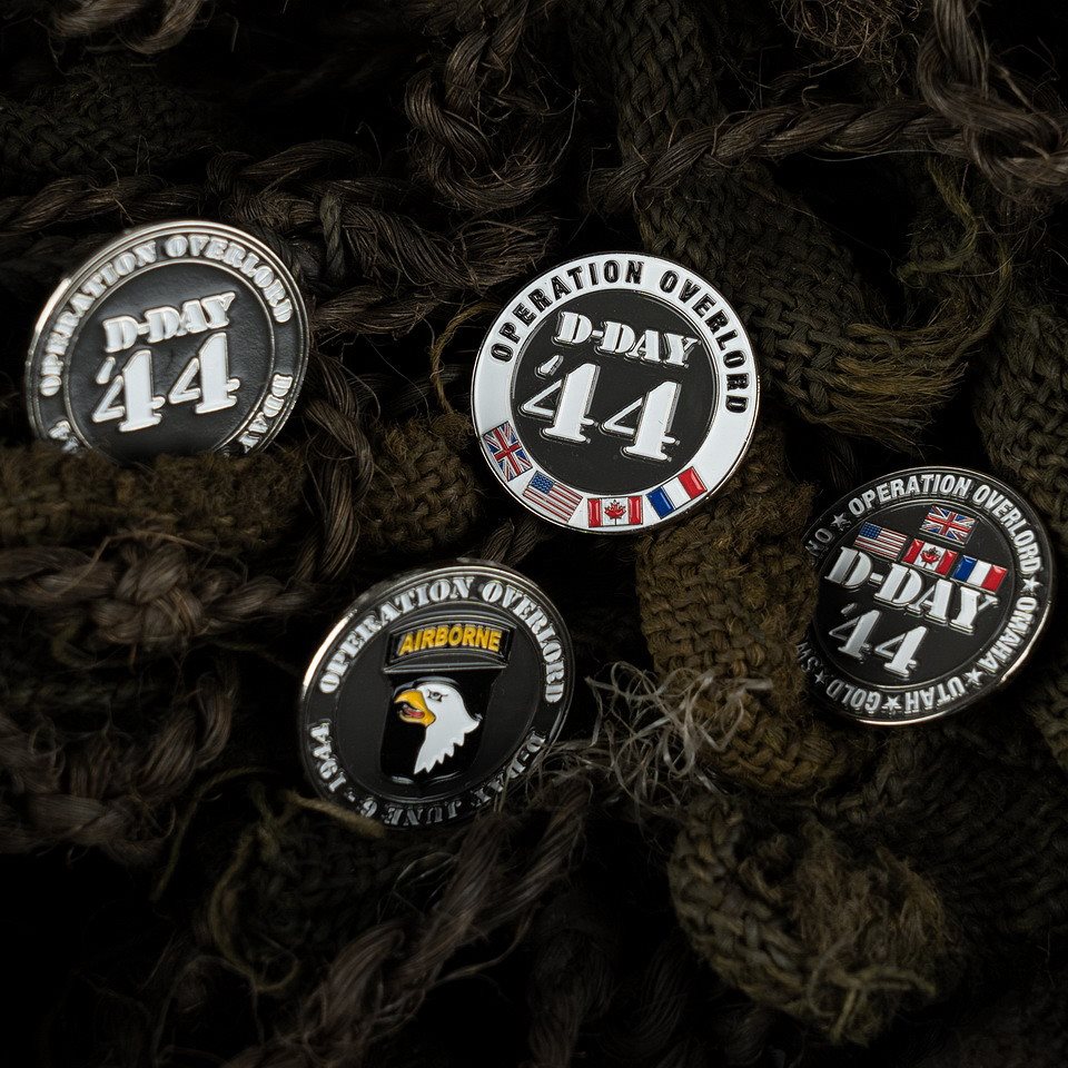 3 x 3 cm kovový odznak z edície pripomínajúci operáciu Overlord, čiže legendárne vylodenie v Normandii, ktoré prebehlo v roku 1944. Stred odznaku zdobí nápis D-DAY 44 a na spodnej strane nájdete vlajky Veľkej Británie, USA, Kanady a Francúzska. Odznak sa pripevňuje pomocou kovového pinu.