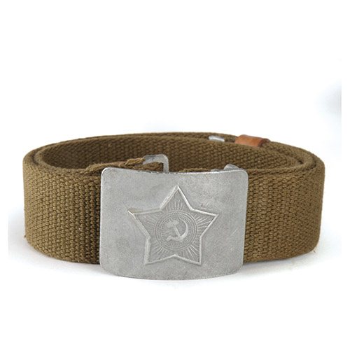 • použitý sovietsky opasok • remeň z pevného textilu s vrstvou nástreku imitujúci kožený povrch hnedej farby • mosadzná pracka hnedozelenej farby • originál ZSSR Ďalšie informácie