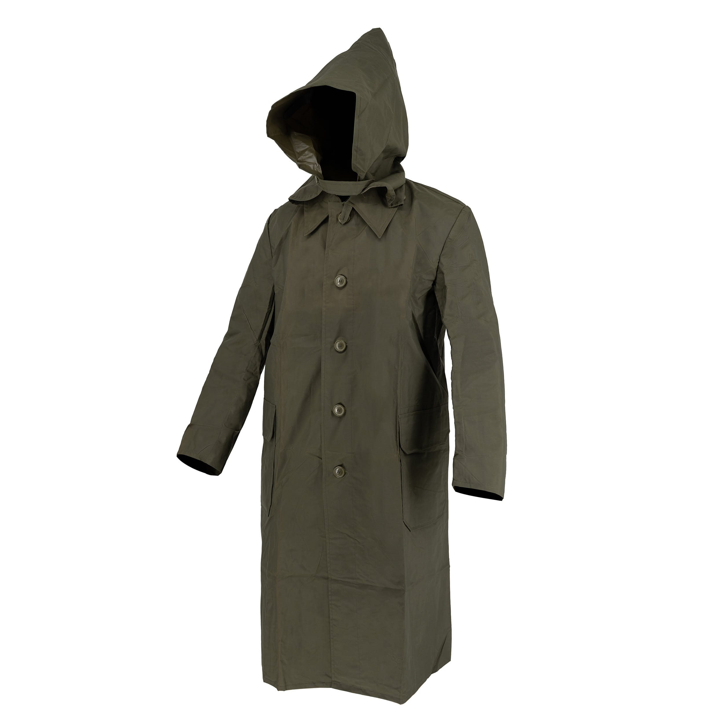 Zelený plášť do dažďa s odnímateľnou kapucňou. S rukávmi. Použitý zo skladov ČSLA