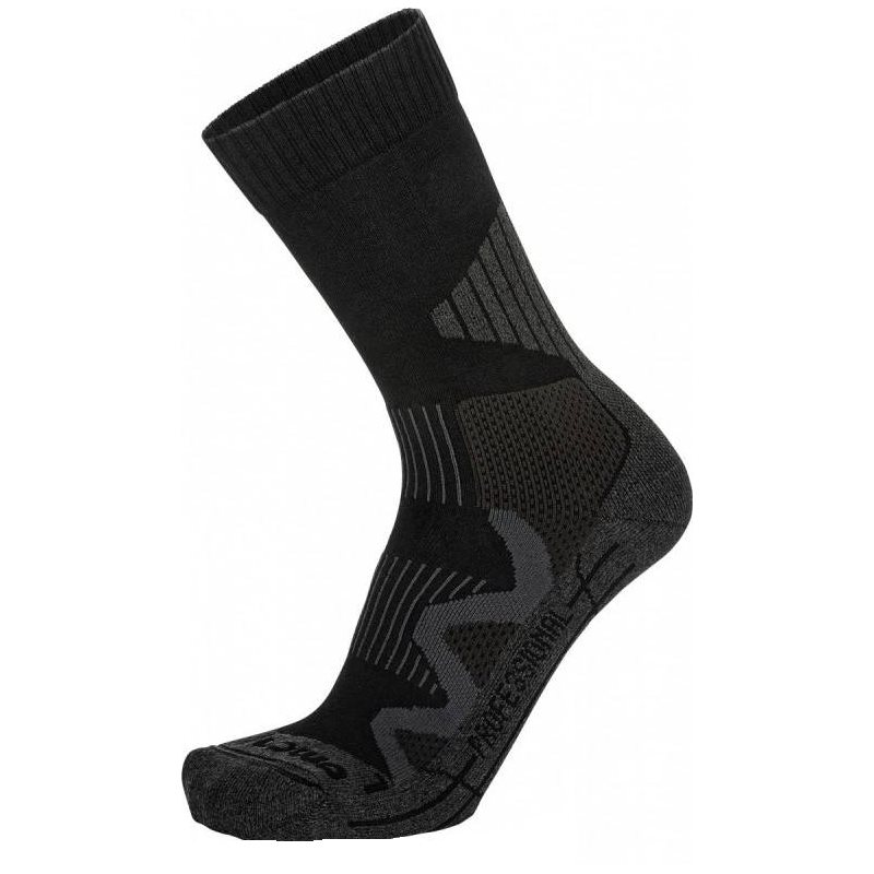 Vysokotechnické ponožky anatomického strihu (ľavá/pravá) vyvinuté na vojenské použitie a pre strážnu službu. Poskytujú optimálne pohodlie pri nosení vďaka polstrovaniu na Achillovke a priehlavku a komfortnému hornému lemu. Vysoká priedušnosť a klimatický komfort sú samozrejmosťou. Ponožka dokonale padne vďaka bezšvovej bi-elastickej konštrukcii a materiálovému zloženiu.