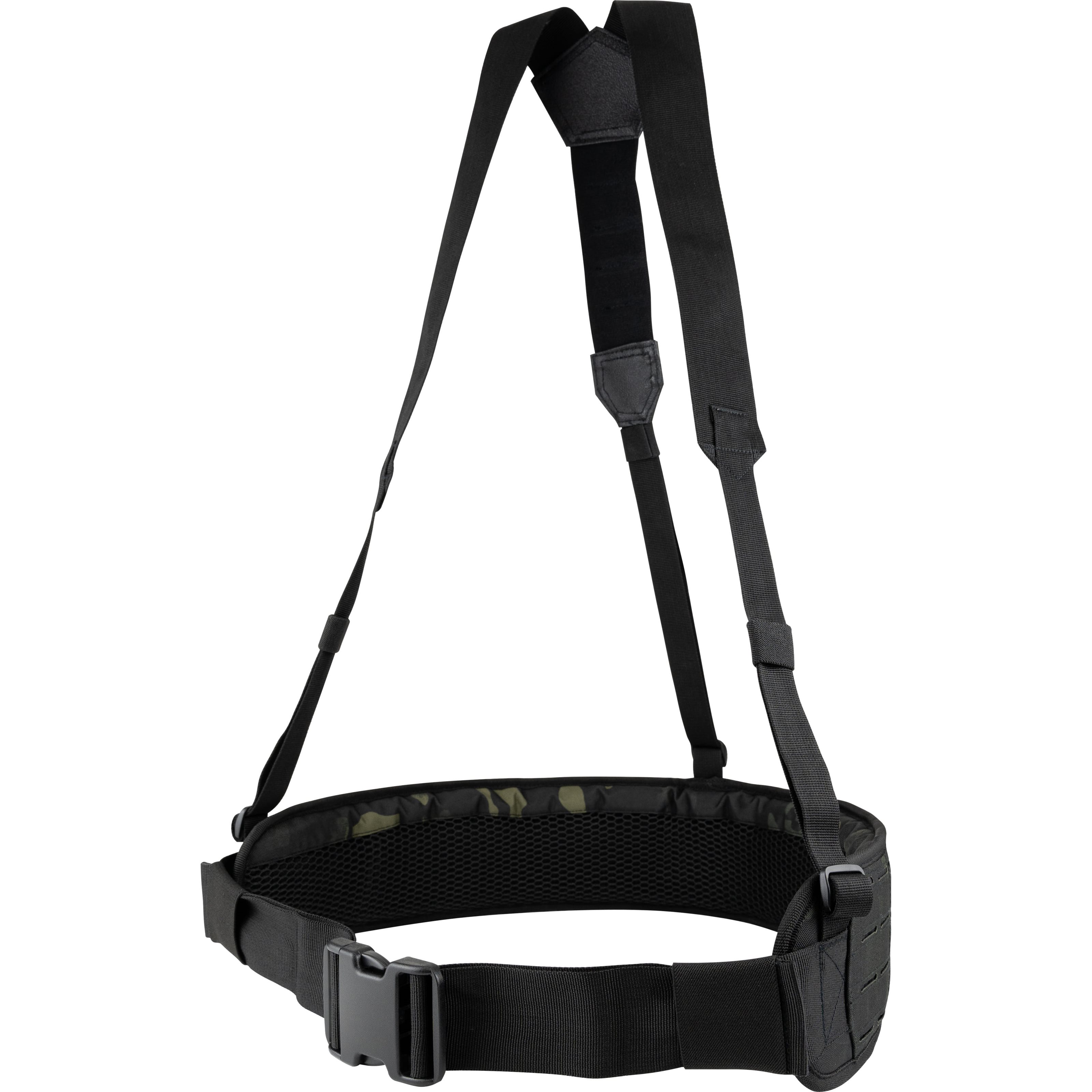 Aby bolo nosenie čo najpohodlnejšie, vnútorná strana opasku je silne polstrovaná a pokrytá priedušnou 3D sieťovinou. Z vonkajšej strany je opasok pokrytý laserom vyrezávanou MOLLE/PALS väzbou, ktorá vám umožní pripojiť veľké množstvo kompatibilného vybavenia. Postroj je k opasku pripojený na troch miestach a je opatrený prackami umožňujúcimi rýchly odhod.