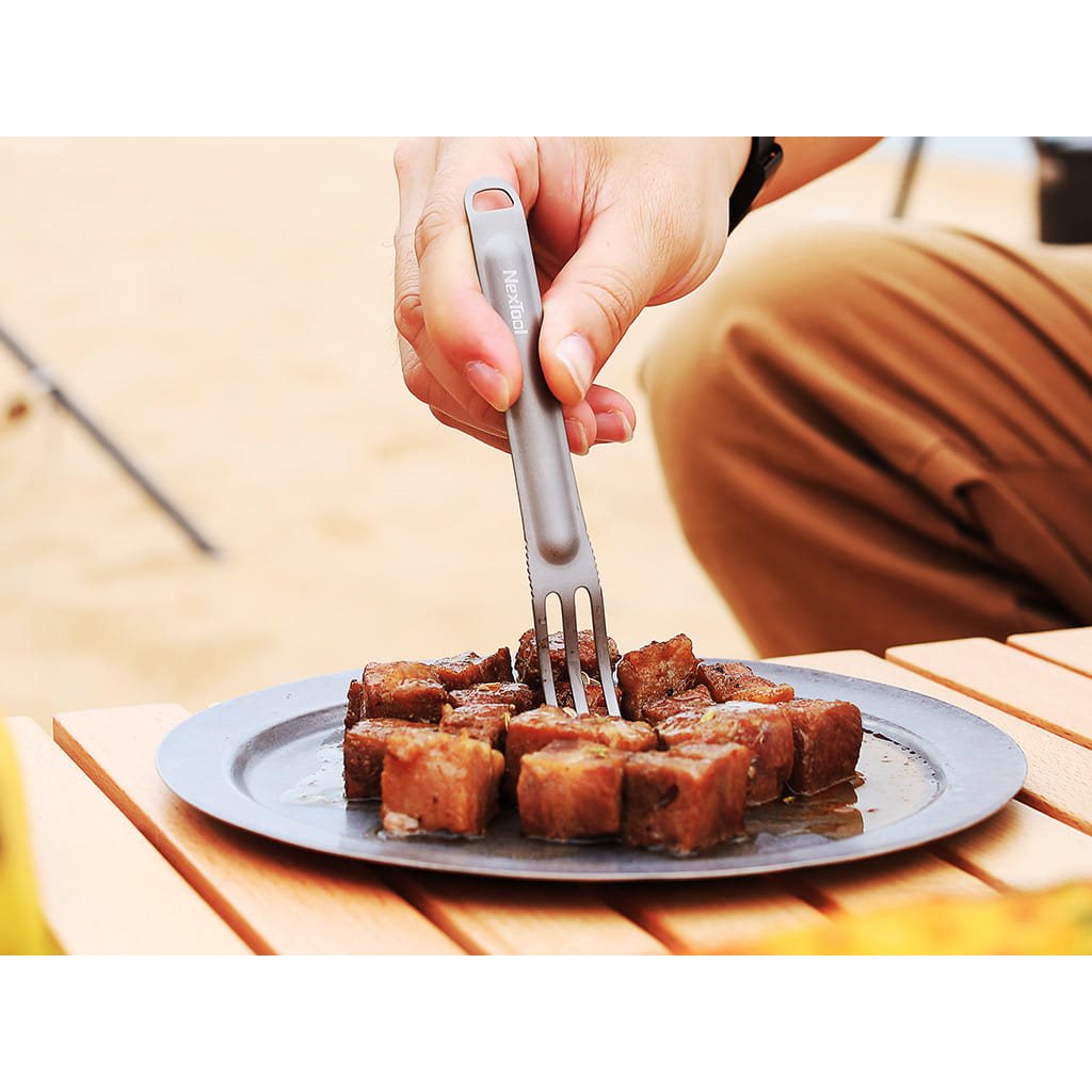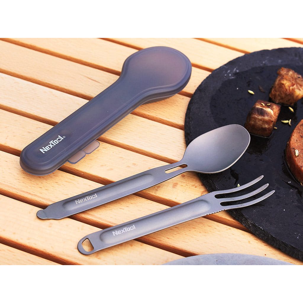 Kompaktná dvojdielna sada titánových príborov, ktorú možno ľahko zložiť. Príbory sú vyrobené z ľahkého titánu TA1 vhodného na použitie s potravinami, ktorý sa vyznačuje mimoriadne nízkou hmotnosťou. Vidličku možno zasunúť do otvoru v lyžici a príbory potom možno ako celok uložiť do priloženého cestovného puzdra.