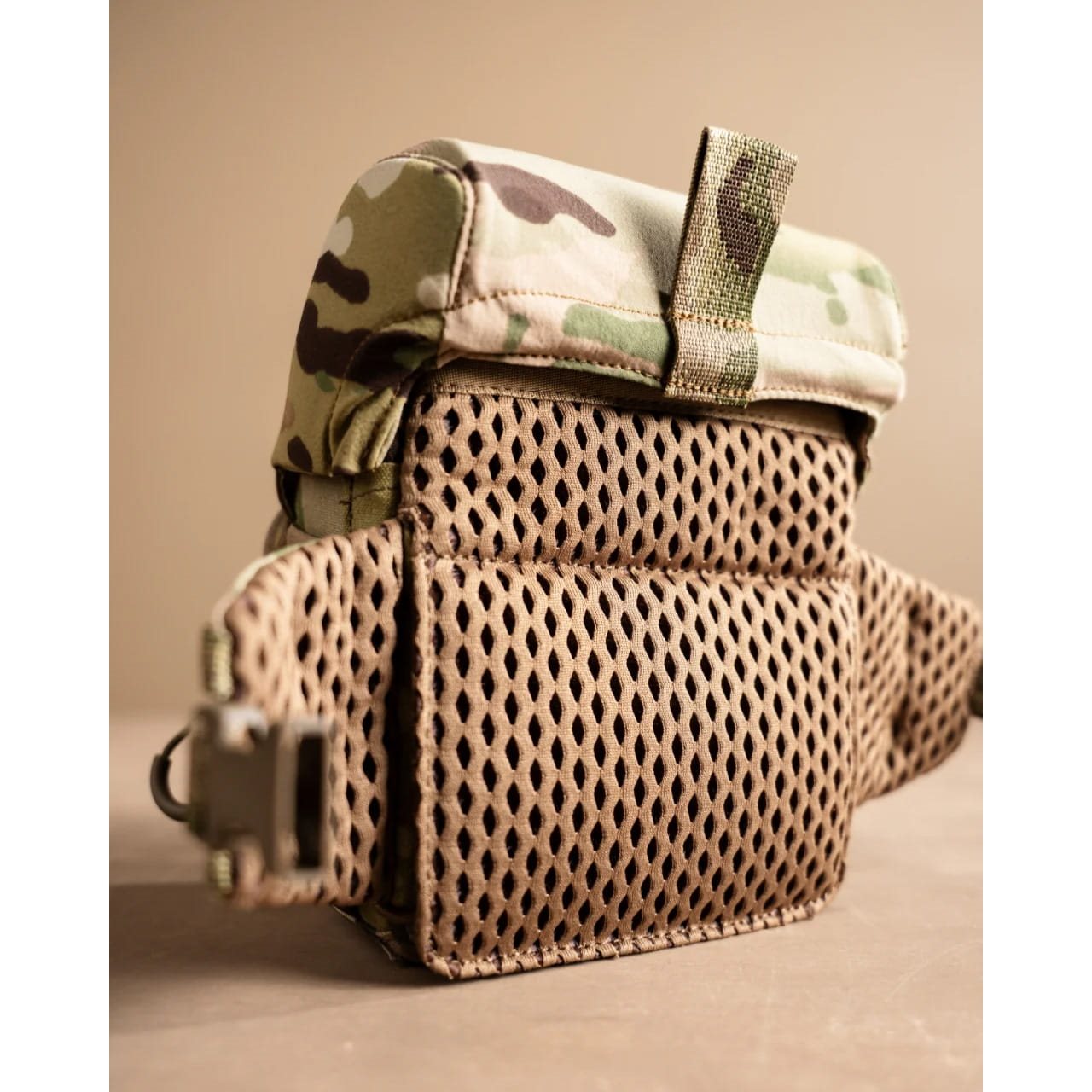 Puzdro BRAVO je navrhnuté tak, aby hlavné vrecko na uloženie optiky bolo možné rýchlo a ticho otvoriť aj zavrieť jednou rukou. Ďalekohľad je možné vo vrecku fixovať pomocou dodávanej elastickej odopínateľnej šnúry. Na prednej strane puzdra nájdete menšie vrecko prístupné cez dvojcestný zips opatrený mohutnými tiahlami. Vnútri vrecka nájdete dve ploché priehradky perfektné na uloženie drobnej výbavy, peňazí a pod. Na bokoch sa nachádza dvojica vreciek s elastickým okrajom a dve malé "krídielka" vybavené modulárnou väzbou, ktorá poslúži na pripevnenie dodatočného vybavenia z radu RECON a BRAVO od značky EBERLESTOCK, či iného. Zadná strana puzdra je mohutne polstrovaná pomocou priedušnej 3D sieťoviny, je možné ju rozopnúť, odhaliť VELCRO panel a následne fixovať celý rad dodatočného podvesného príslušenstva. Nosný systém puzdra disponuje prievlakmi pre hadičku hydratačného systému a je odopínateľný pomocou plastových praciek. Navyše je možné na tele veľmi jednoducho a rýchlo veľkostne nastaviť pomocou pritiahnutia bočných popruhov. Zadná strana postroja je plochá, nijako neprekáža pri prípadnom nosení batohu a je opatrená laserom vyrezávanou modulárnou väzbou, ktorú môžete použiť na fixáciu puzdier pre výbavu či na pripevnenie menšieho hydratačného batohu.
