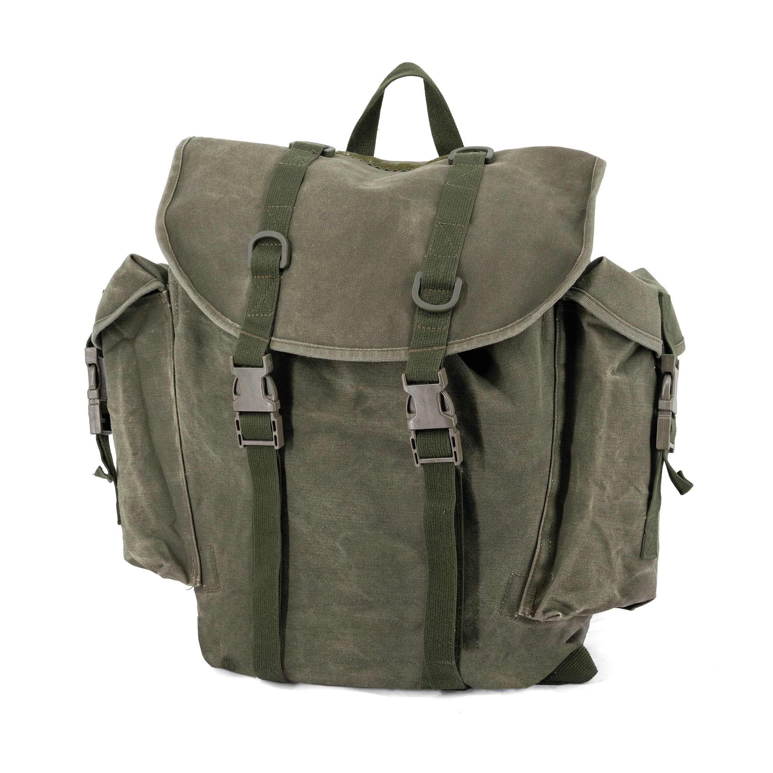 Originálny ľahký, plátenný horský batoh BW armády. Dve bočné vrecká kryté chlopňou so sťahovaním. Sťahovacie remene na klope. Popruh slúžiaci ako bedrový pás. Na vrchu batohu sú umiestnené oká na pripevnenie napr. deky Ďalšie informácie