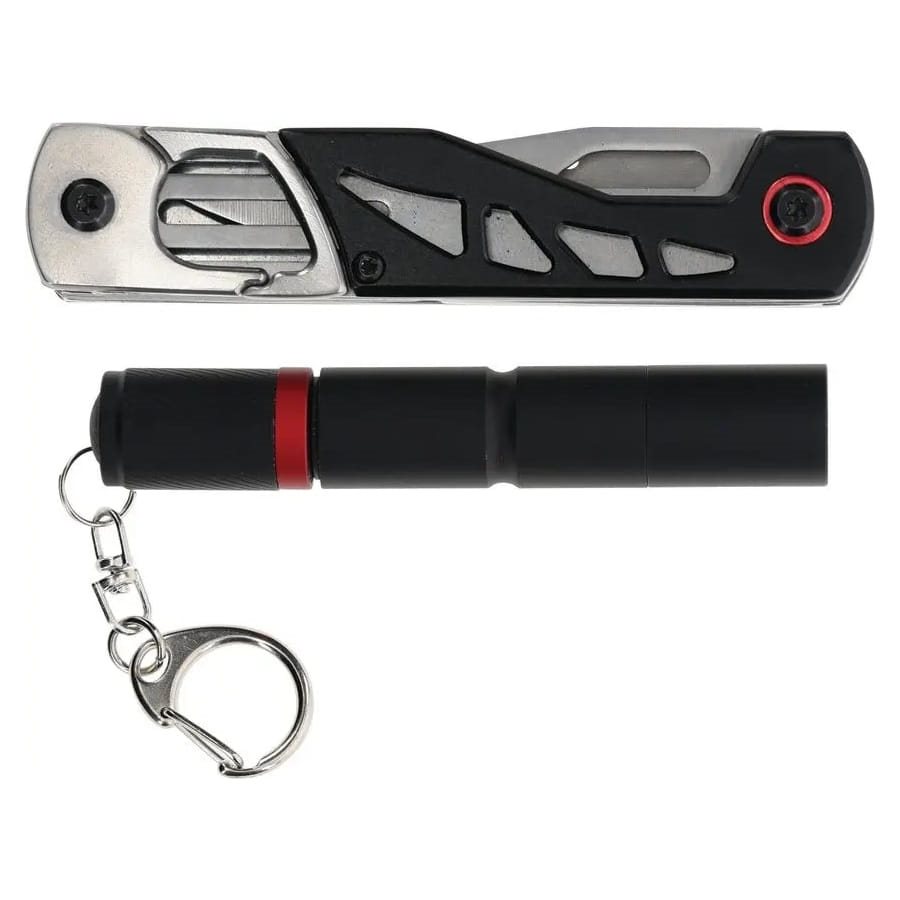Multifunkčný nôž dodávaný v sete s minimalistickým svietidlom napájaným pomocou 1 AAA batérie. Nástroje aj rukoväť noža sú vyrobené z nerezovej ocele s vysokým podielom uhlíka v zliatine. Nôž disponuje krížovým (Phillips) skrutkovačom, plochým skrutkovačom, otváračom na fľaše a nožom s hladkým ostrím. Kľúčenkové svietidlo je vyrobené z hliníka.