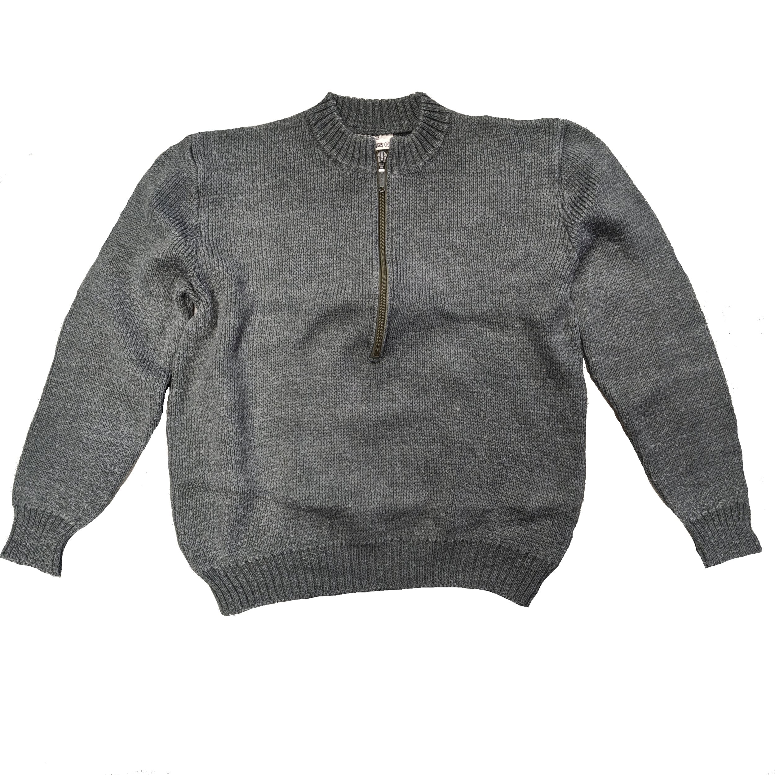 Vlnený sveter z armádnych prebytkov švajčiarskej armády. Tovar je použitý, avšak v slušnom stave.