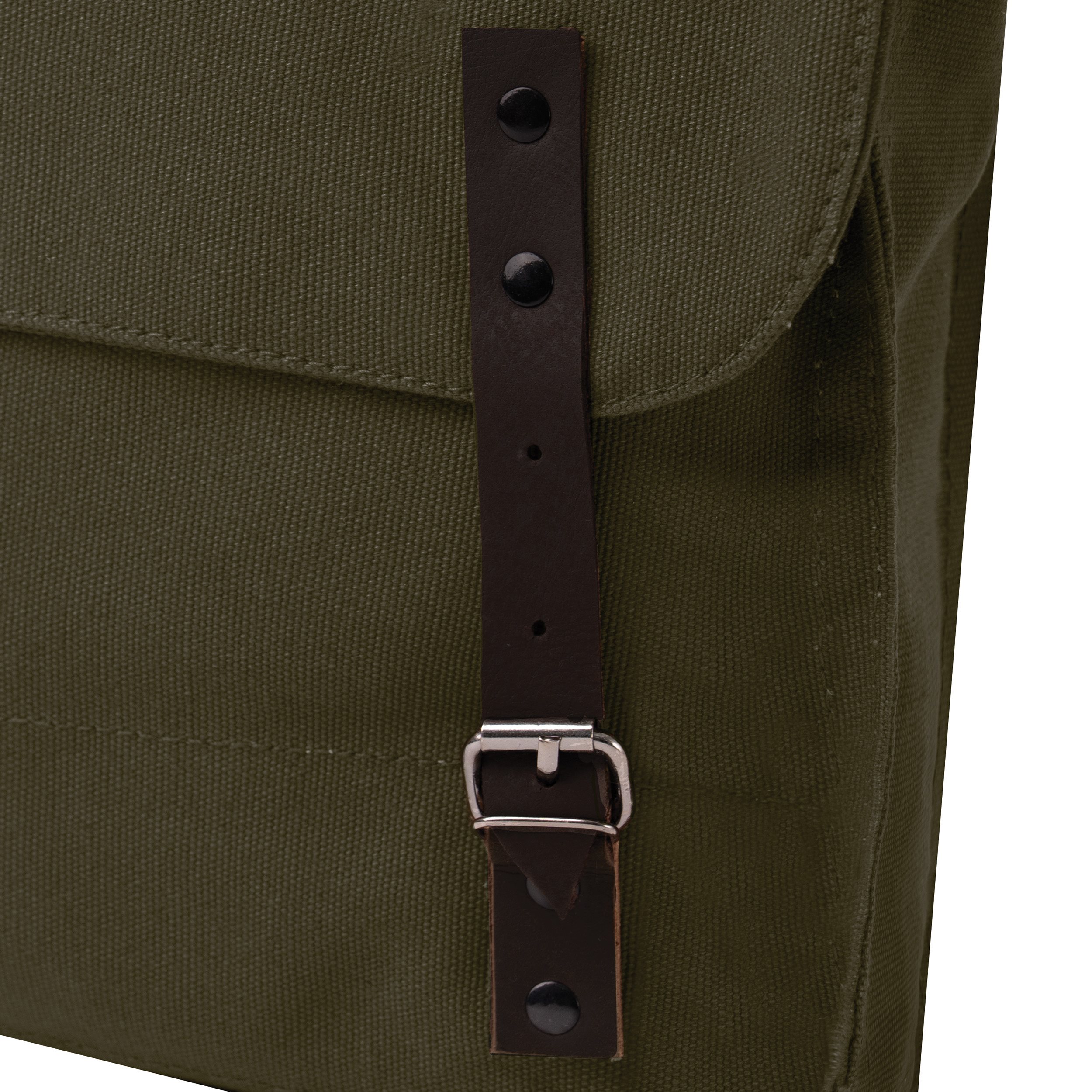 Jednoduchá taška cez rameno v štýle zdravotníckych tašiek, u nás známa tiež ako chlebník. Je vyrobená zo silného bavlneného plátna vo vintage štýle. Zapínanie je riešené pomocou kožených pásikov s prackou. Rozmery: 30 x 28 x 9 cm.