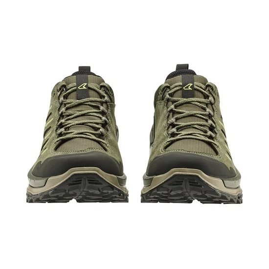 Dynamická turistická poltopánka INNOVO GTX LO zaujme pohodlne odpruženou medzipodrážkou LOWA® DYNAPU® s dvojitým vstrekovaním a inovovaným dezénom s výrazným vzorom. Ten zabezpečuje optimálnu priľnavosť vďaka všesmerovo orientovaným výstupkom a väčšej kontaktnej ploche s povrchom. Tento model posúva komfort pri turistike na novú úroveň a využíva odolnú kombináciu semišu a textilu, vodonepriepustnú membránu GORE-TEX a viacero priedušných panelov. Praktickými prvkami sú aj zvýšená ochrana špičky a pútka, ktoré uľahčujú obúvanie aj vyzúvanie. Vďaka pevnej konštrukcii podrážky a pružnému, zároveň robustnému zvršku predstavuje INNOVO GTX LO vyváženú kombináciu stability, opory a dynamiky.