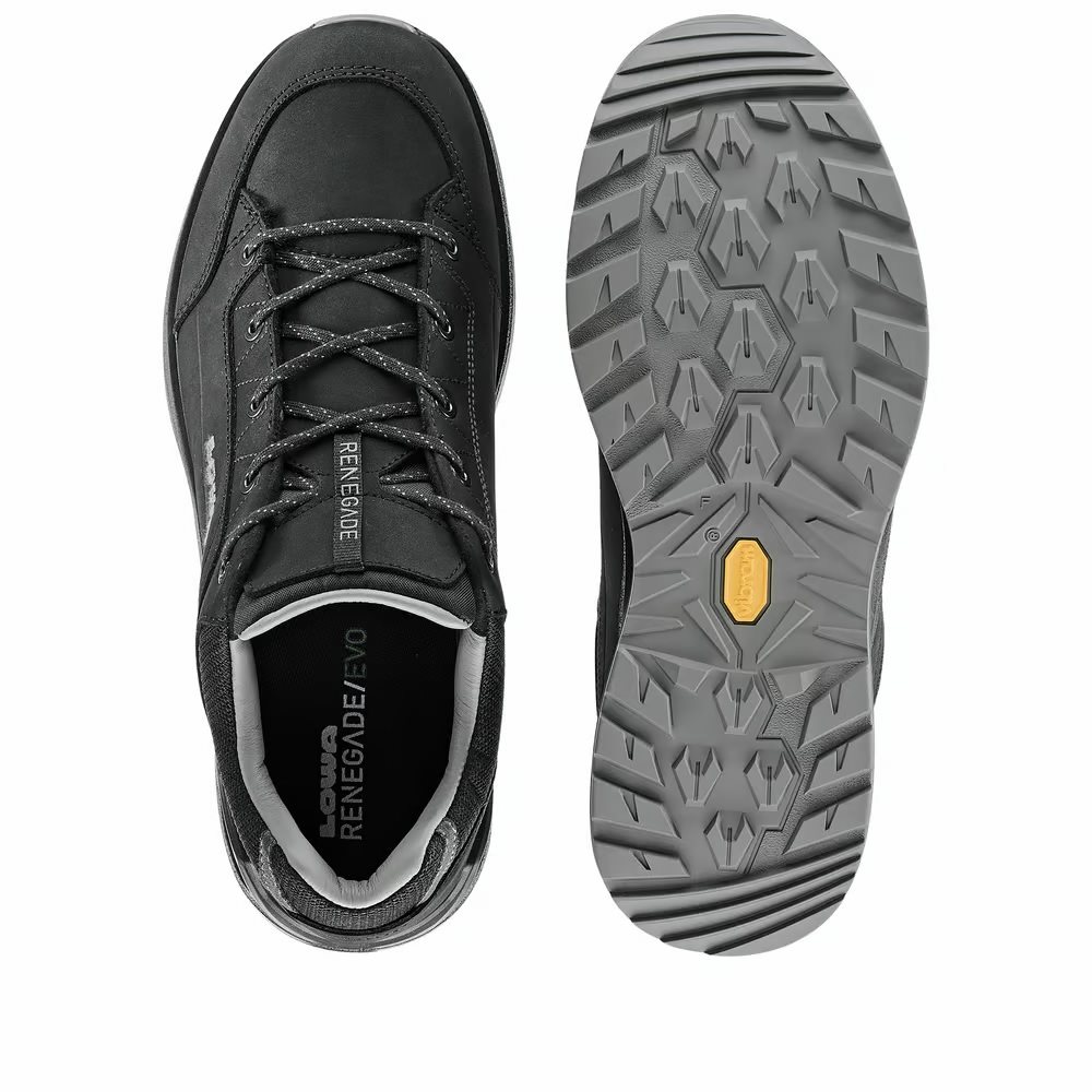 S ďalšou inováciou obľúbeného a celosvetovo najpredávanejšieho modelu RENEGADE prichádza LOWA v roku 2024. Pri výrobe nového RENEGADE EVO bolo použitých menej jednotlivých dielov kože pri výrobe zvršku. Pri šnurovaní bol odobraný posledný háčik, a tak šnúrka prechádza iba očkami. Inováciou prešla aj podošva, ktorá má teraz lepšiu priľnavosť k terénu a viac elegantný vzhľad. Topánka je teraz využiteľná ako na trek v prírode, tak aj na mestskú turistiku.