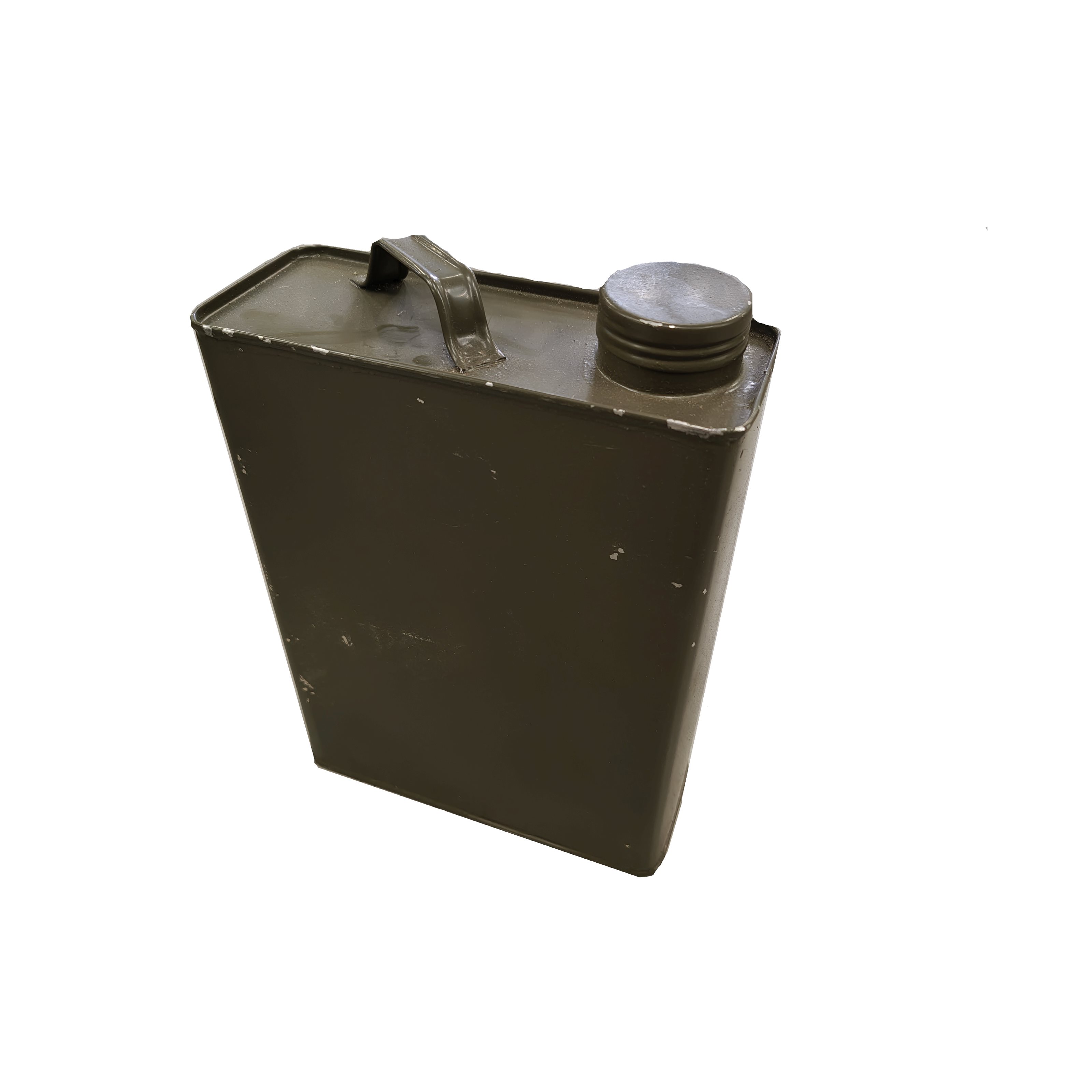Plechový kanister s objemom cca 1,5 litra z jemného plechu je nutné používať všade tam kde, je skladovaná alebo prepravovaná látka v kvapalnom stave