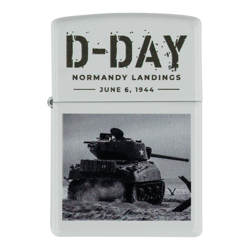 Klasický benzínový zapaľovač ZIPPO v edícii pripomínajúcej vylodenie v Normandii. Je vyrobený z odolného kovu a plameň zapaľovača odolá aj vetru. Dodávaný v darčekovej krabičke. Vyobrazený tank M4 SHERMAN (76 mm variant) bol najznámejší dobový americký tank a zároveň druhý najpočetnejší tank Druhej svetovej vojny.